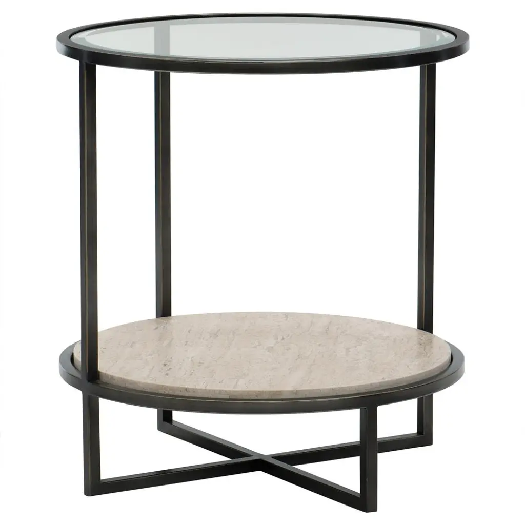 Vincent Industrial Clear Tempered Glass Bronze Steel Frame Round Side Table
