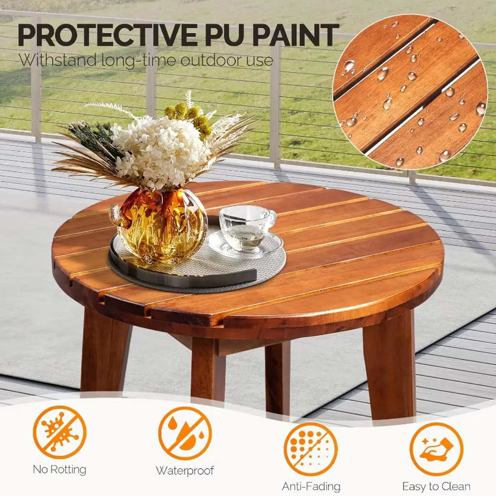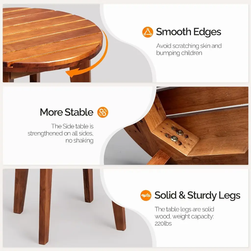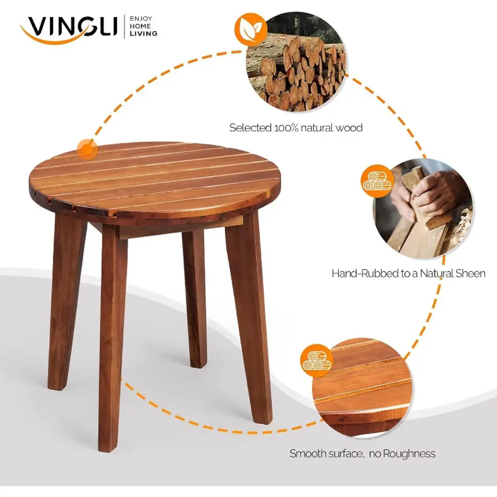Vingli Solid Wood Outdoor Side Table, Weather-resistant Round Patio End Accent Table For Garden, Balcony, Porch