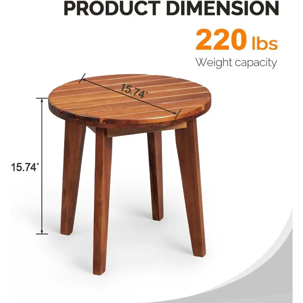 Upgrade Your Outdoor Space with Timeless Elegance! This 15.74-inch solid wood outdoor side table combines natural aesthetics with rugged functionality. The waterproof PU coating shields against moisture, fading, making it a resilient companion for gardens, balconies, patios, or covered porches. Its compact round design maximizes space without sacrificing style – perfect for holding drinks, snacks, books, or decorative lanterns. Effortless Style, Enduring Quality: • Material: 100% Solid Wood + Protective PU Lacquer • Dimensions: 15.74” (Dia) × 15.74” (H) • Weight Capacity: Holds up to 220 lbs • Style: Minimalist round shape with smooth, splinter-free edges Why Choose This Outdoor Side Table? → Weatherproof Durability: Engineered for year-round outdoor exposure. Create your cozy outdoor oasis today – where practicality meets nature’s beauty!