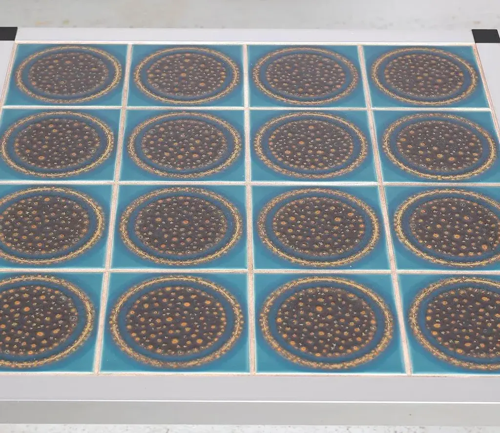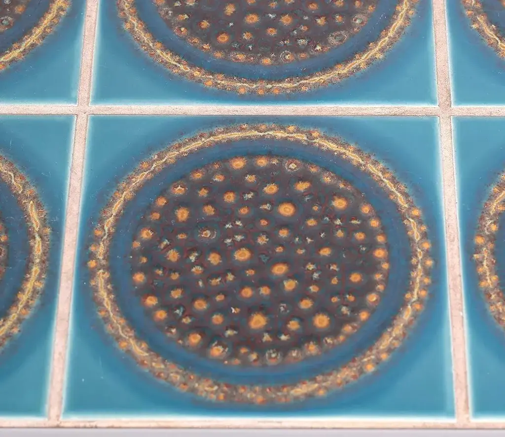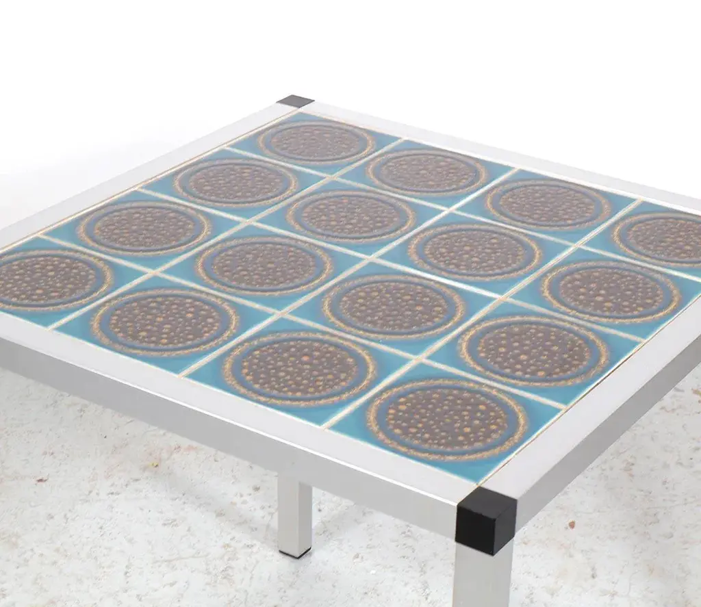 Vintage Danish Side Table With Blue Tiles, 1970s