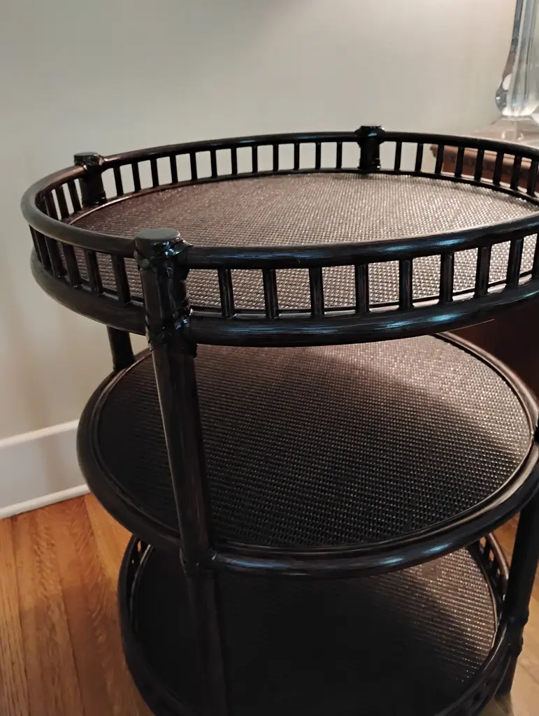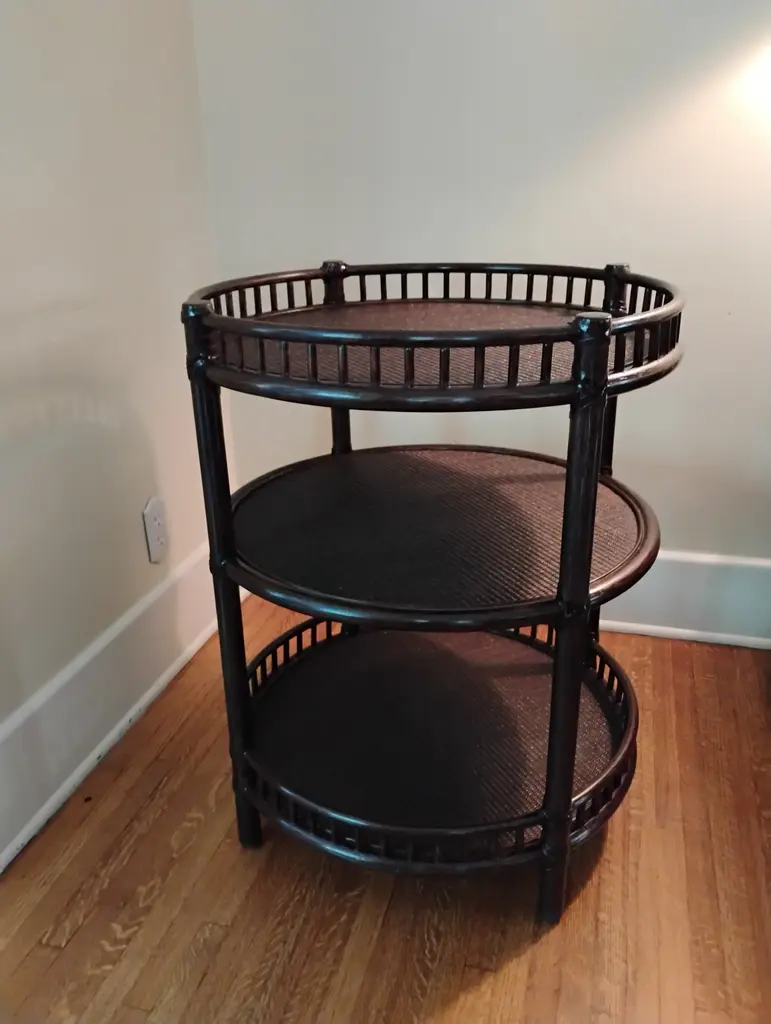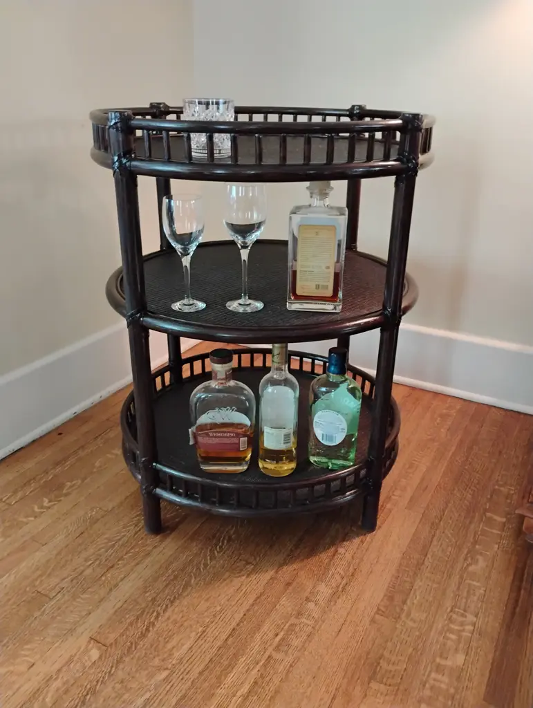 Vintage Mcguire Rattan 3 Tiered Bar Cart