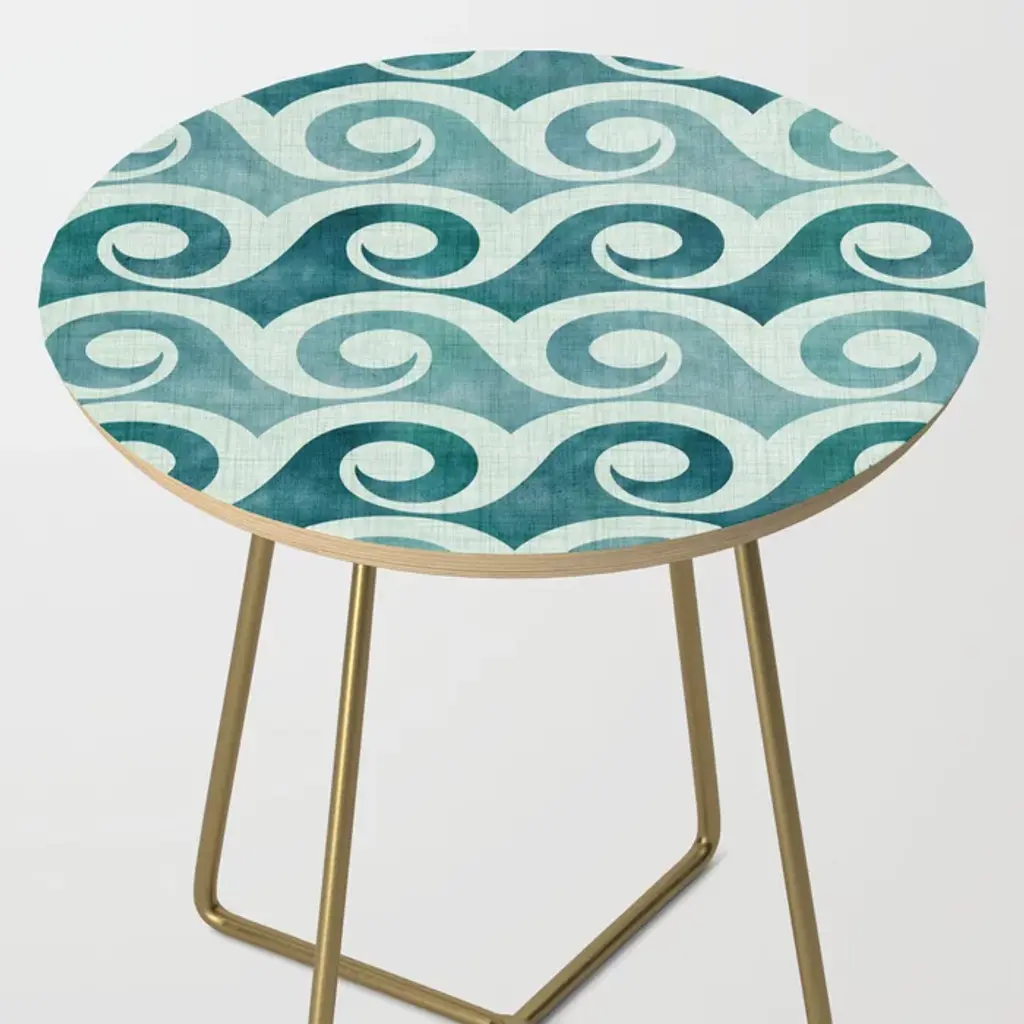 Vintage Waves Tropical Teal Geometric Pattern Side Table