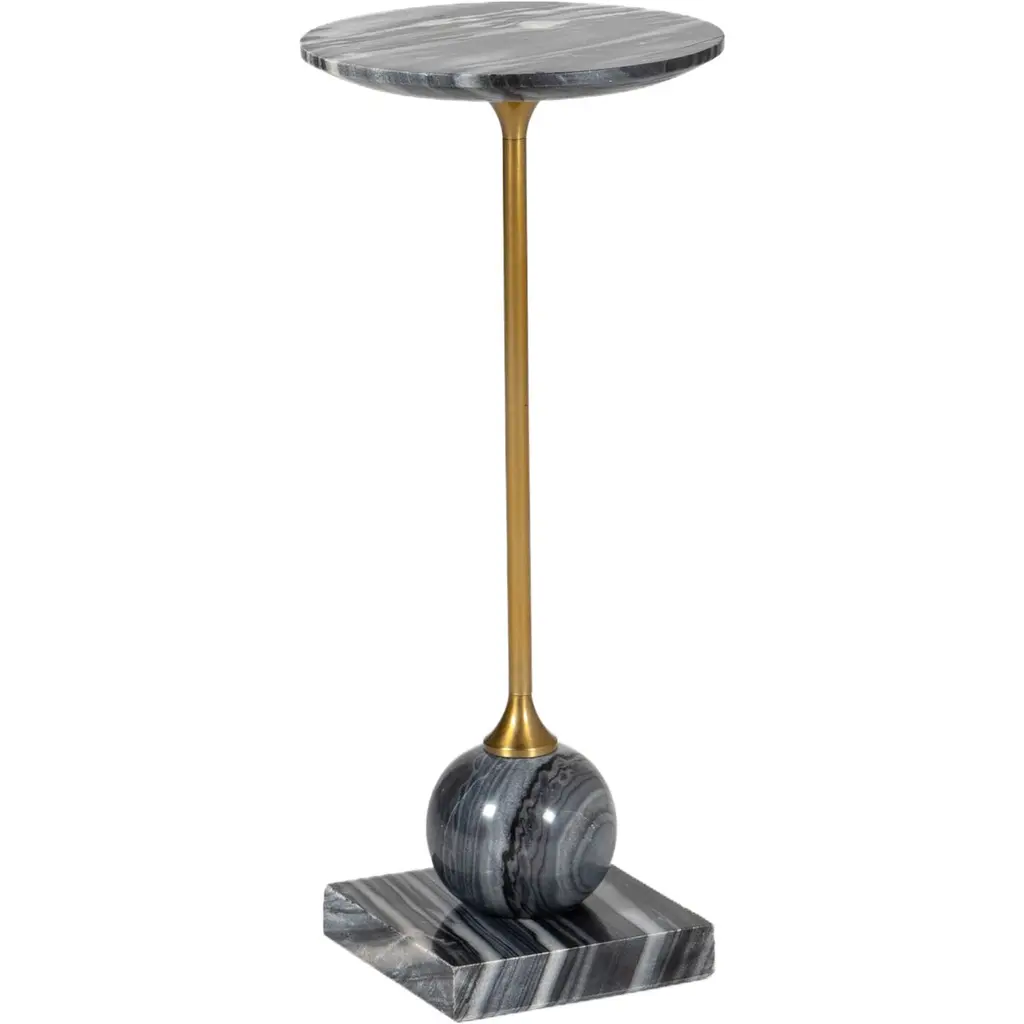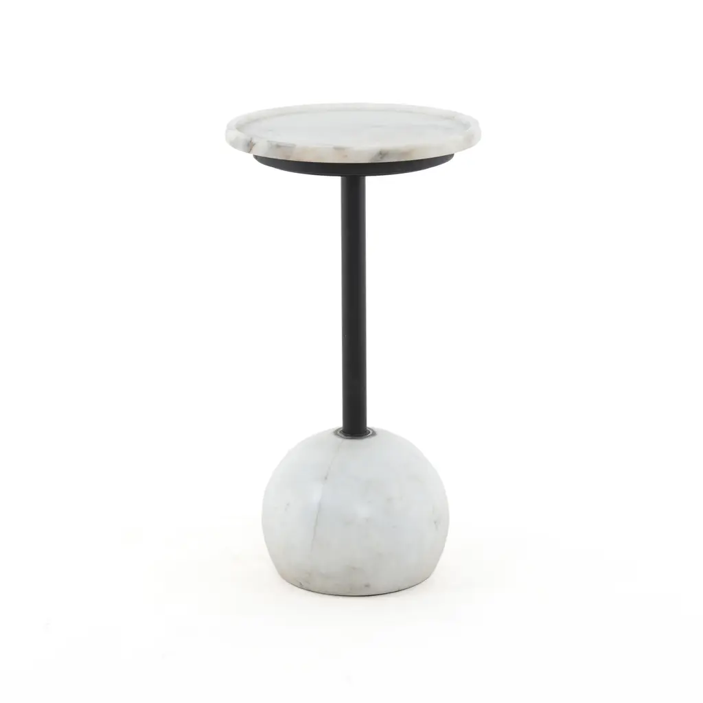 Indulge in the luxurious elegance of the Viola Accent Table from Four Hands. With its stunning marble foundation and sleek iron piping, this table adds a touch of sophistication to any room. The raised lip on the tabletop ensures practicality, while the unique design enhances the beauty of the natural marble. Elevate your space with this exquisite accent table. Highlights