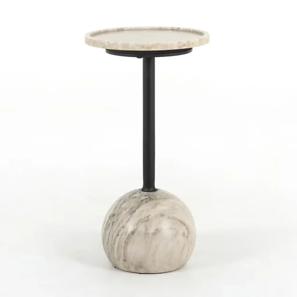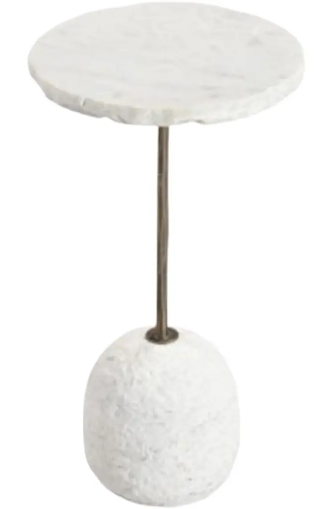 The Viola Accent Table from Four Hands layers on the sophistication in one’s room with a beautiful sequence of diverse forms. The piece starts with an elegant marble foundation, rounded into a delightful globe. The smooth surface of the globe accentuates the veining and varied colors of the marble. Iron piping lifts the tabletop for a tidy modern appearance. This marble tabletop receives a raised lip to help keep objects and spills contained.