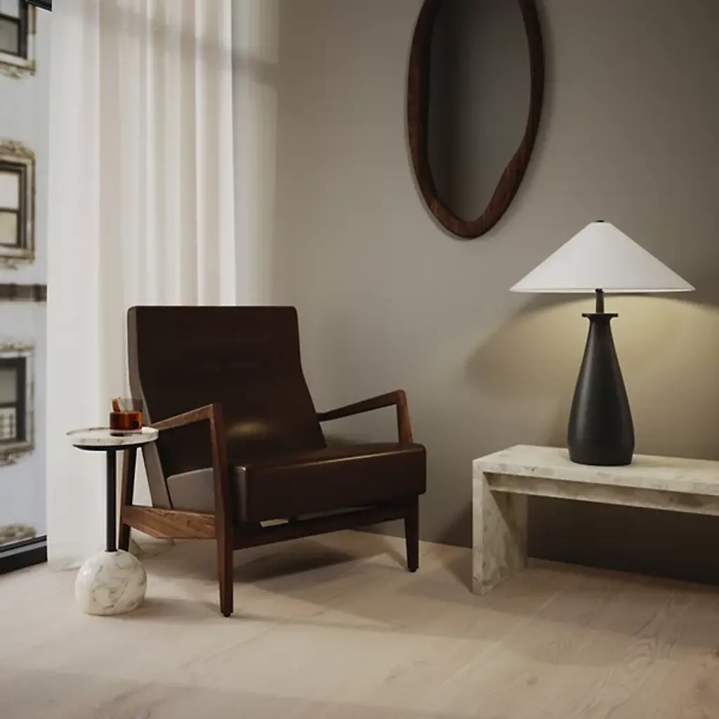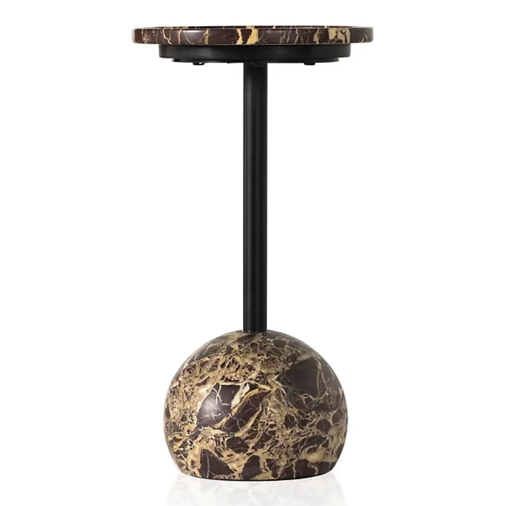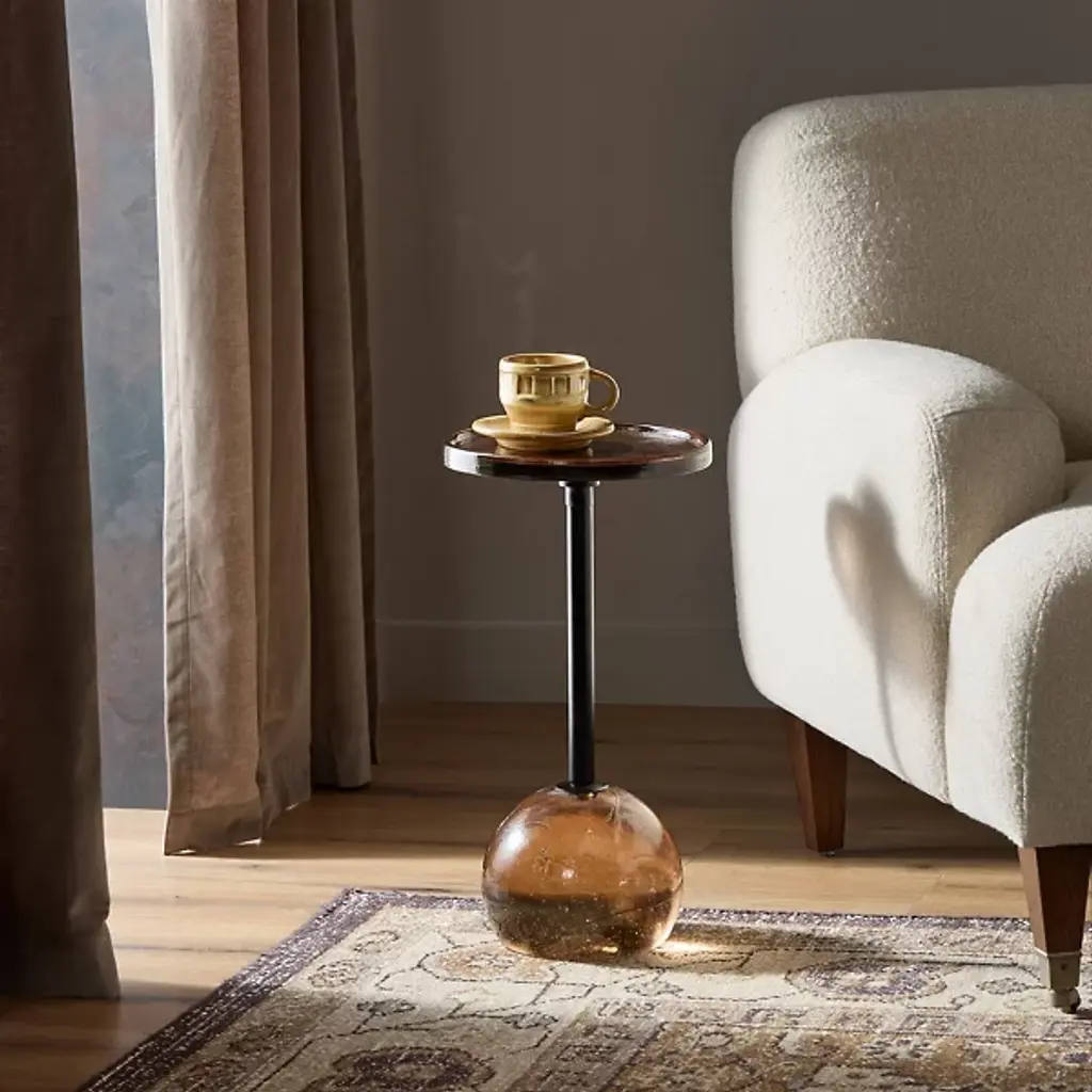 The Viola Accent Table from Four Hands layers on the sophistication in one’s room with a beautiful sequence of diverse forms. The piece starts with an elegant marble foundation, rounded into a delightful globe. The smooth surface of the globe accentuates the veining and varied colors of the marble. Iron piping lifts the tabletop for a tidy modern appearance. This marble tabletop receives a raised lip to help keep objects and spills contained.