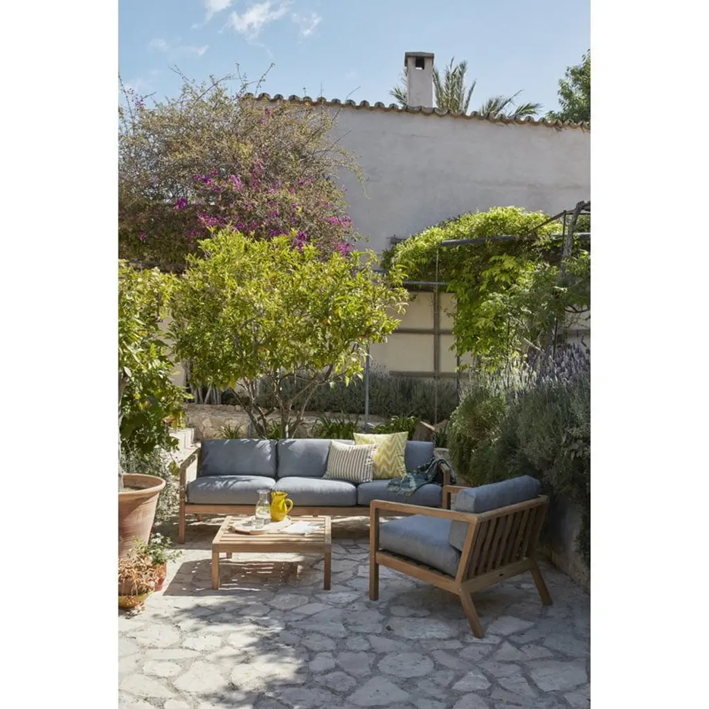 Skagerak’s Virkelyst garden table has a charmingly minimalist appearance but boasts a great deal of versatility: the small table can be used as a coffee or side table as well as a foot stool or an extra seat. A true multitasker for your garden, balcony, patio or porch! Virkelyst is a modern outdoor furniture range, designed by SAYS WHO for Skagerak, combining a clean-lined design with the natural appeal of teak wood which, in time, will develop a beautiful silvery gray patina. Combine your favorite Virkelyst furniture to get a stylish sofa set for your garden or porch or create a small summer oasis on the balcony.