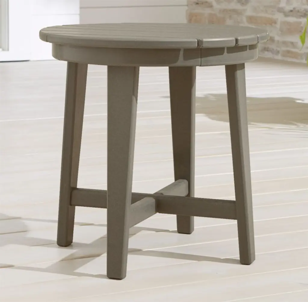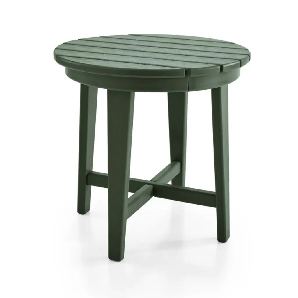 With its x-base and slatted top, this side table complements the iconic style of our Vista Adirondack chair. But the best part about Vista's exclusive design is the super-durable POLYWOOD® constructiona proprietary blend of plastics that's weather- and UV-resistant. Built to last (and last), the dark green side table partners with the coordinating chair to provide a ready landing spot for an icy-cold drink.