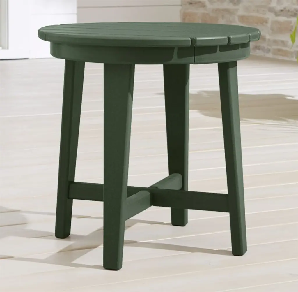 With its x-base and slatted top, this side table complements the iconic style of our Vista Adirondack chair. But the best part about Vista's exclusive design is the super-durable POLYWOOD® constructiona proprietary blend of plastics that's weather- and UV-resistant. Built to last (and last), the lime green side table partners with the coordinating chair to provide a ready landing spot for an icy-cold drink.