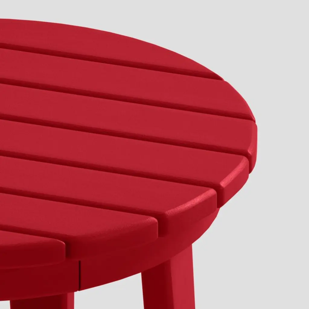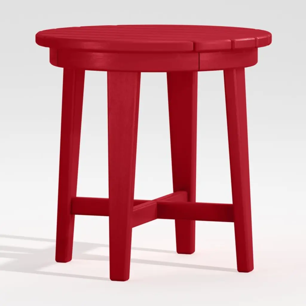 With its x-base and slatted top, this side table complements the iconic style of our Vista Adirondack chair. But the best part about Vista's exclusive design is the super-durable POLYWOOD® constructiona proprietary blend of plastics that's weather- and UV-resistant. Built to last (and last), the bright red side table partners with the coordinating chair to provide a ready landing spot for an icy-cold drink.