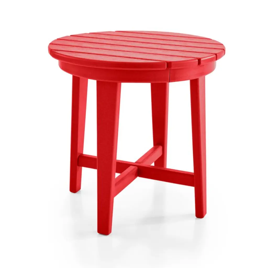 With its x-base and slatted top, this side table complements the iconic style of our Vista Adirondack chair. But the best part about Vista's exclusive design is the super-durable POLYWOOD® constructiona proprietary blend of plastics that's weather- and UV-resistant. Built to last (and last), the bright red side table partners with the coordinating chair to provide a ready landing spot for an icy-cold drink.