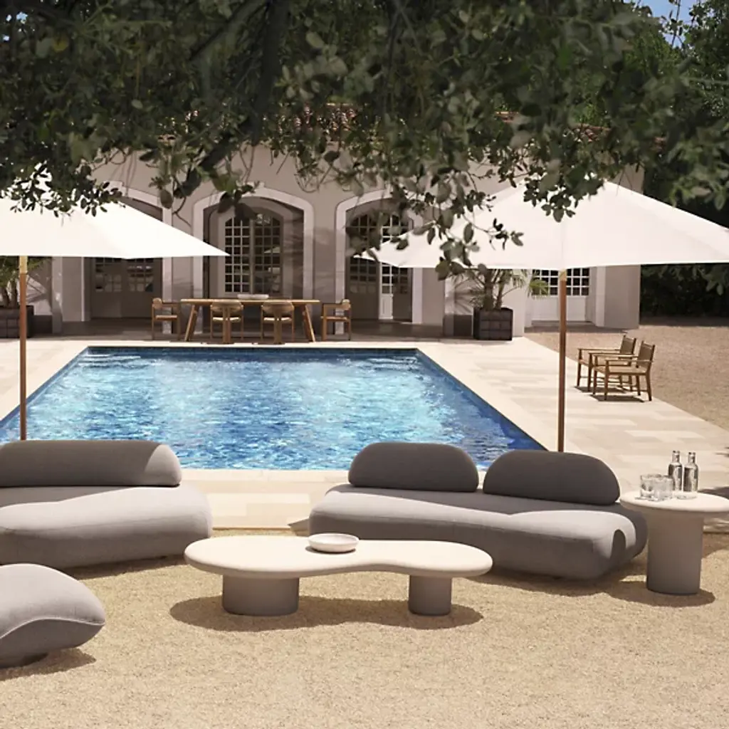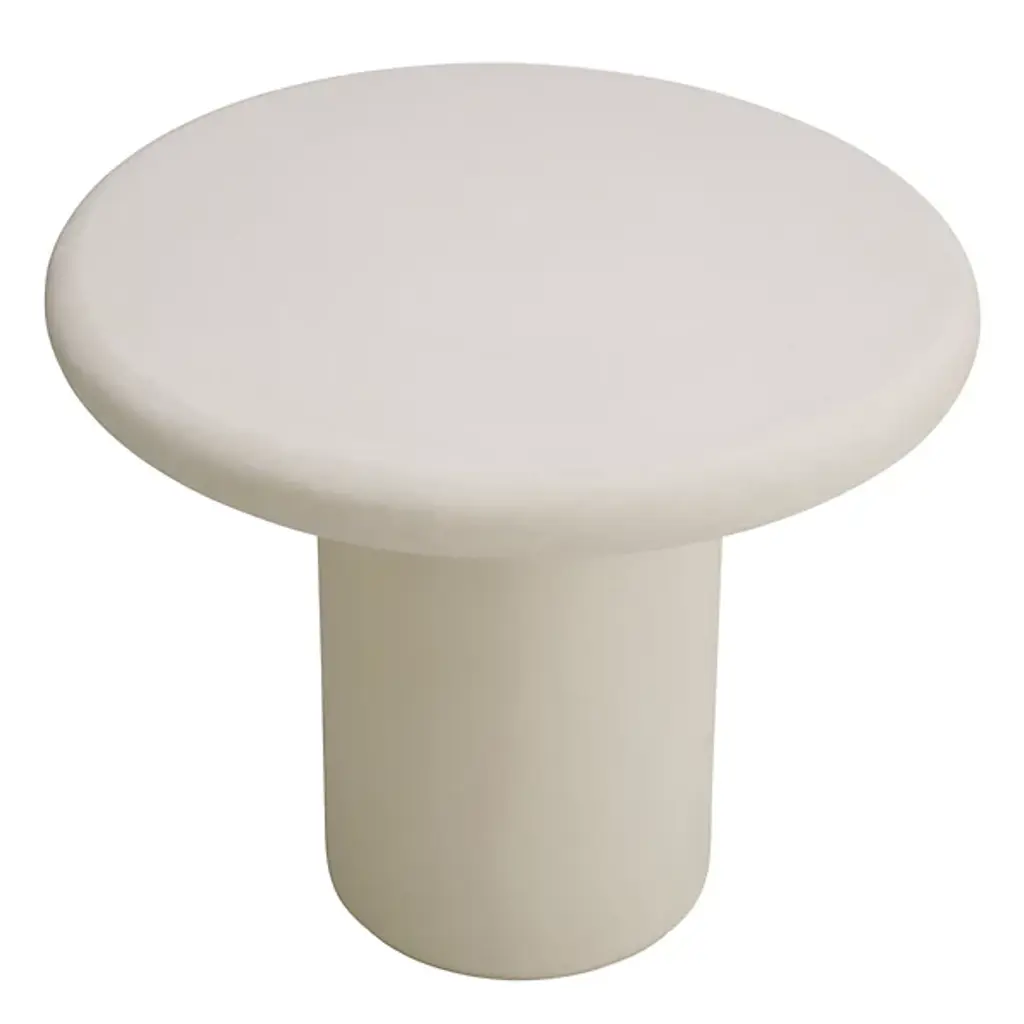 The Vitalis Outdoor Side Table from Eichholtz merges modern design with practical function. Its disc-shaped tabletop and cylindrical display a stylized mushroom shape, playfully bringing a contemporary flair to outdoor and indoor spaces. Each table is expertly handcrafted in Indonesia, this table is constructed from glass fiber-reinforced concrete, offering exceptional durability and weather resistance. Its sculptural form, helps the table stand out as an accent piece, great for enhancing any living area.