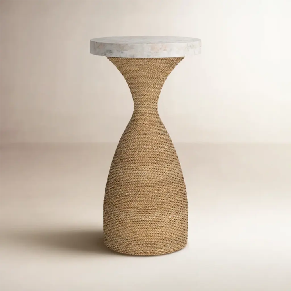Chic and dimensional, this twisted faux wicker table is incredibly versatile, styling well into any setting. Its durable design is ideal for the outdoor, pairing well with sofas, chairs, and loungers.