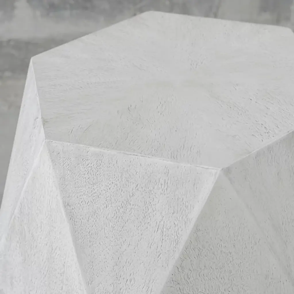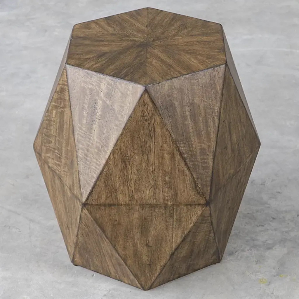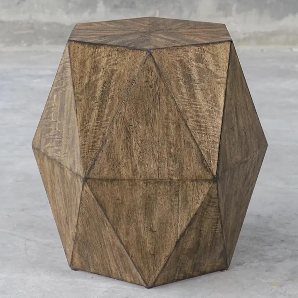 The Volker Geometric Accent Table from Uttermost is a unique blend of geometry and natural beauty. This exceptional accent table features a mesmerizing geometric shape with a stunning hexagonal top in mango veneer. The natural distressing adds character and charm, enhancing its organic appeal. Crafted with meticulous attention to detail, the Volker Accent Table becomes a standout piece, fusing modern geometry and rustic allure. Embrace the beauty and craftsmanship of this captivating addition to your home.