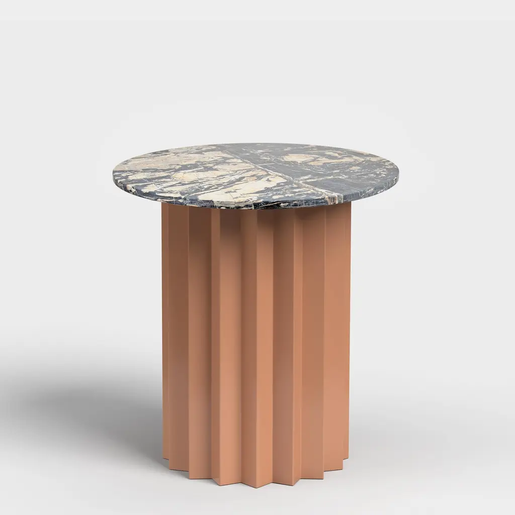 Volume High Side Table, Powder Coated Metal Base with Marble Top by AVLUDimensions: D 45 x H 52 cmMaterials: Galvanized or powder coated metal base with oak veneer, terrazzo and marble top alternatives.Reference: AVVO0205-M1Avlu Design, an interior architecture and design office, was founded in Ankara in 2023 by interior designer Selin Demirel. Having completed numerous prestigious residential and commercial projects both domestically and internationally, Avlu Design has earned a unique place in the interior design industry. By combining modern aesthetics with functionality, Avlu Design’s mission is to create unique and impressive spaces in each project. Our creative vision, attention to detail, and design-focused approach are clearly evident in our residential and commercial projects. In our design processes, we blend our unique aesthetic with functional solutions to deliver creative solutions that reflect the essence of each space. Our team prioritizes our clients' needs and expectations when bringing our projects to life through strong teamwork and creative thinking. At Avlu Design, we prioritize not only the visual but also the emotional and functional aspects of interior spaces, aiming to add value to your homes and commercial spaces and add an aesthetic touch to your life.