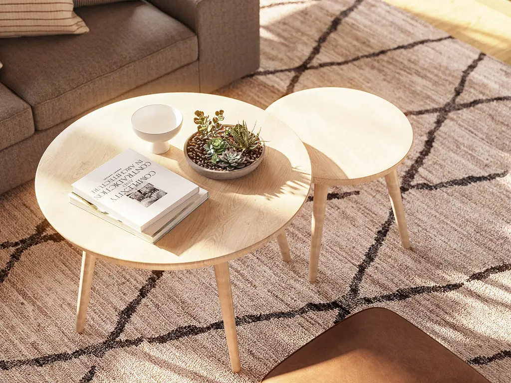 Inspired by flowing points of intersection on the streets we walk everyday, Voya Side Table's angled, hand-carved legs narrow to a delicate width. Enjoy with a nesting Voya Coffee Table at its side, or place on its own for a perfect place to plop your drink. Expertly crafted by hand using your choice of hard White Oak, Maple, American Walnut, or black-stained White Oak.