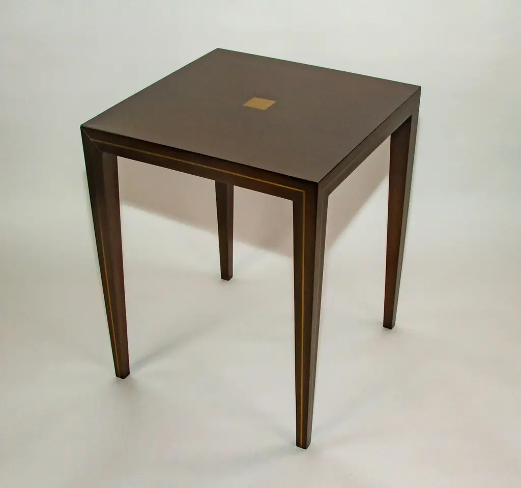 Walnut Side Table With Brass Or Aluminum Inlay Detail