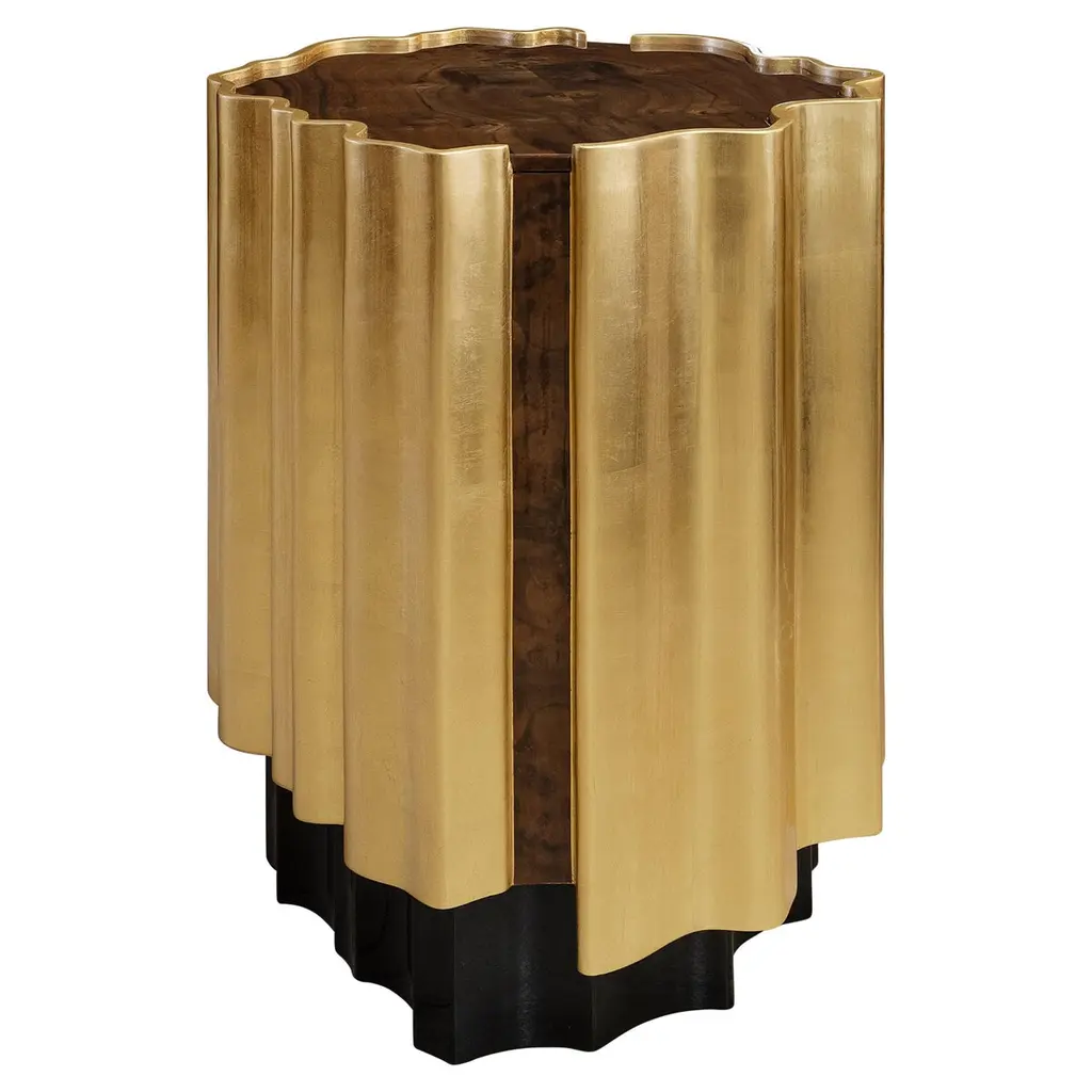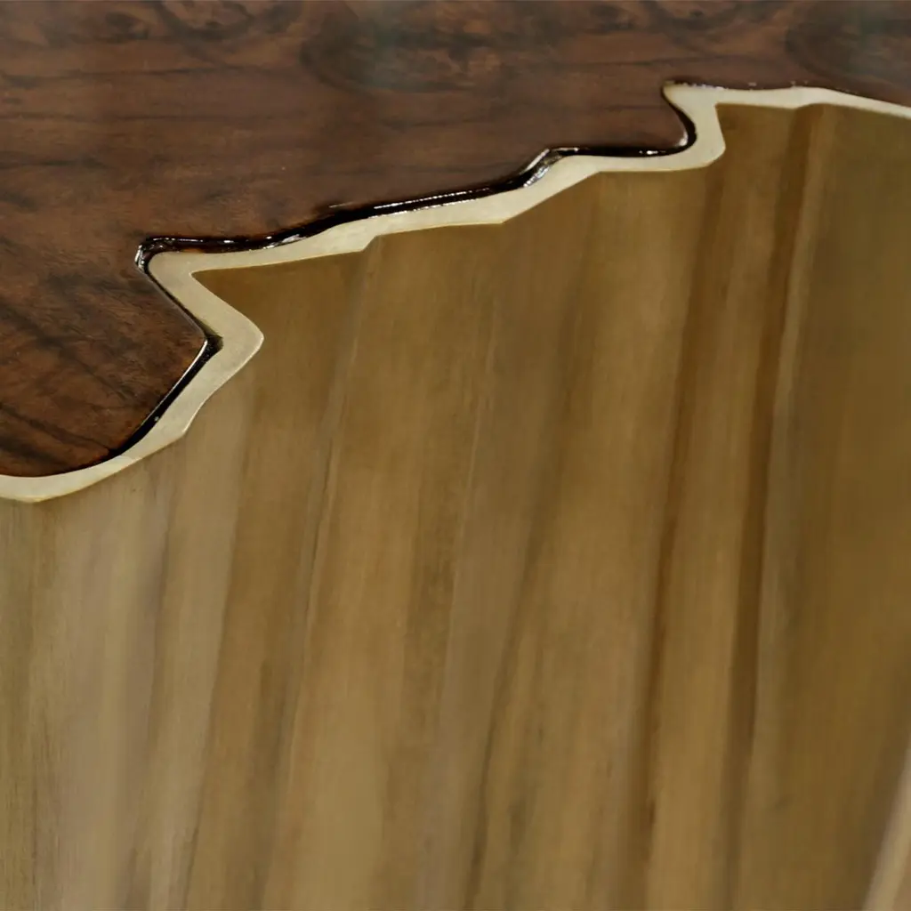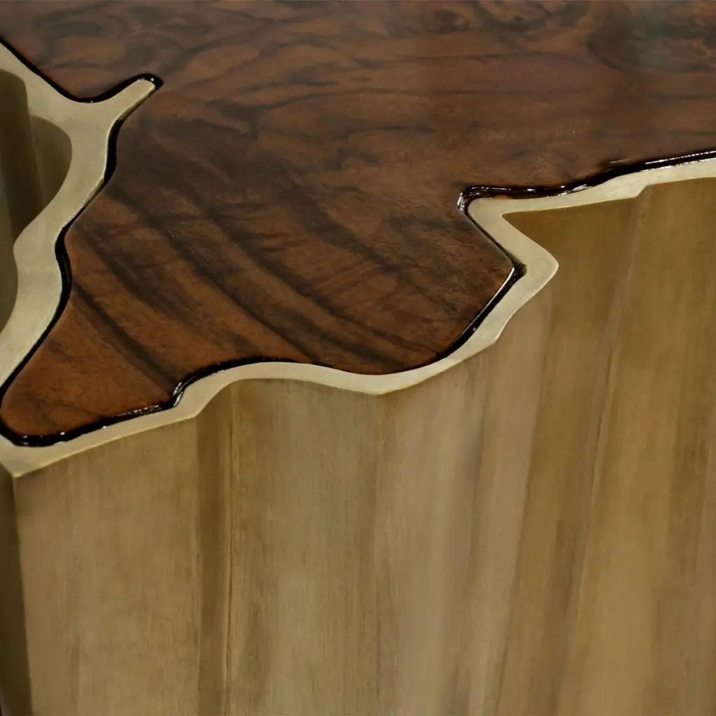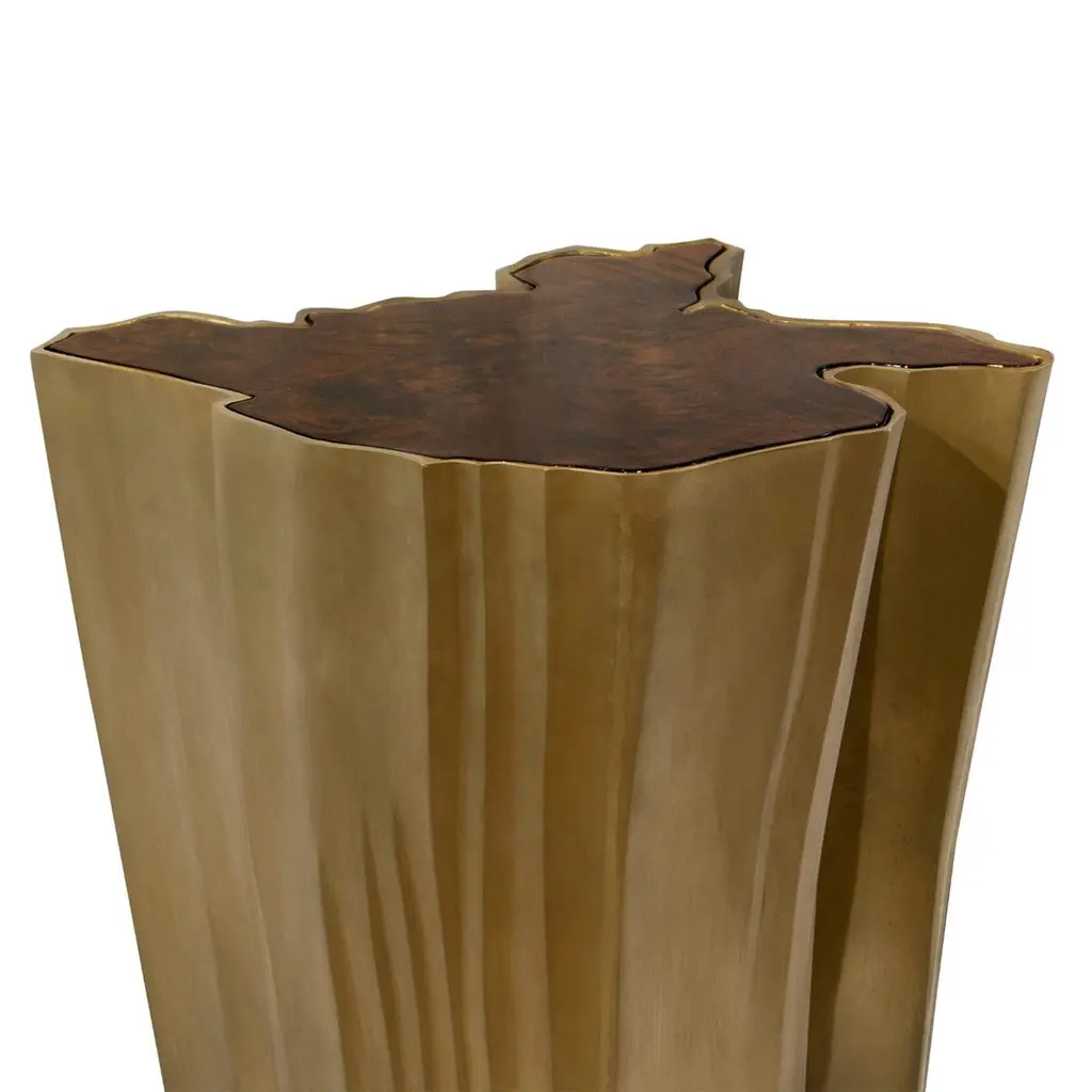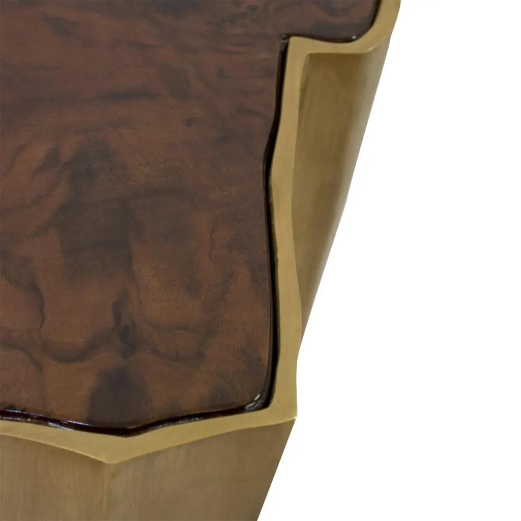 Side Table Walnut Top with walnut veneer top in matte finish.Base in casted solid brass in brushed finish with glossy varnished.