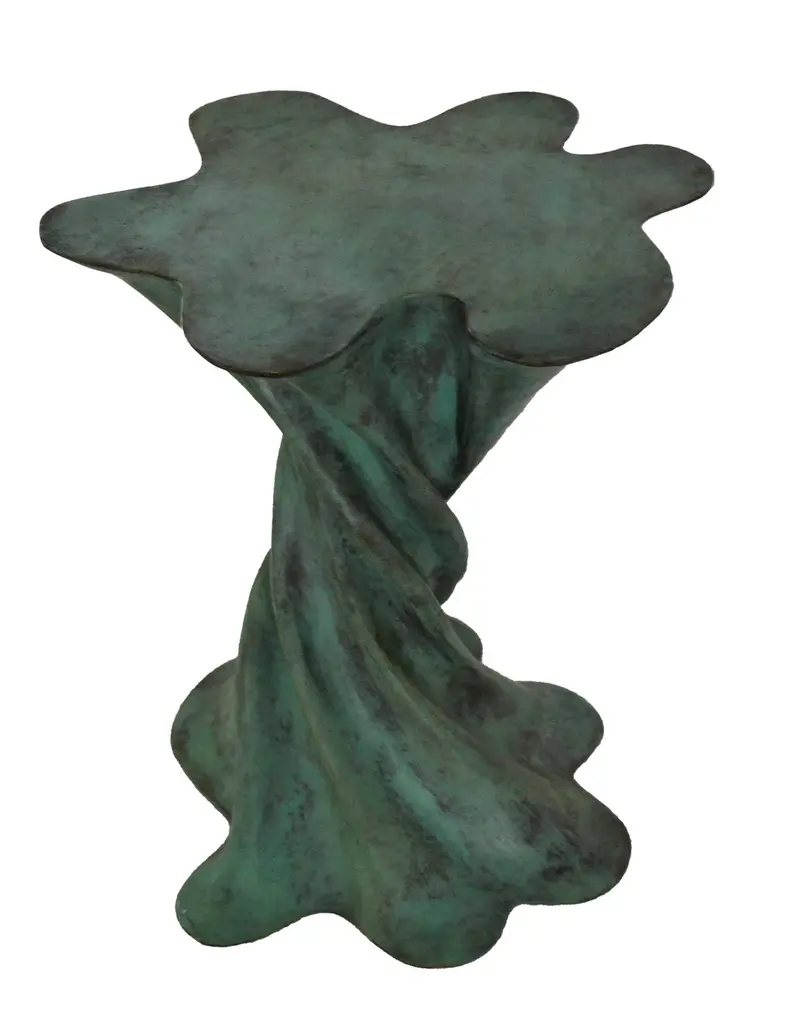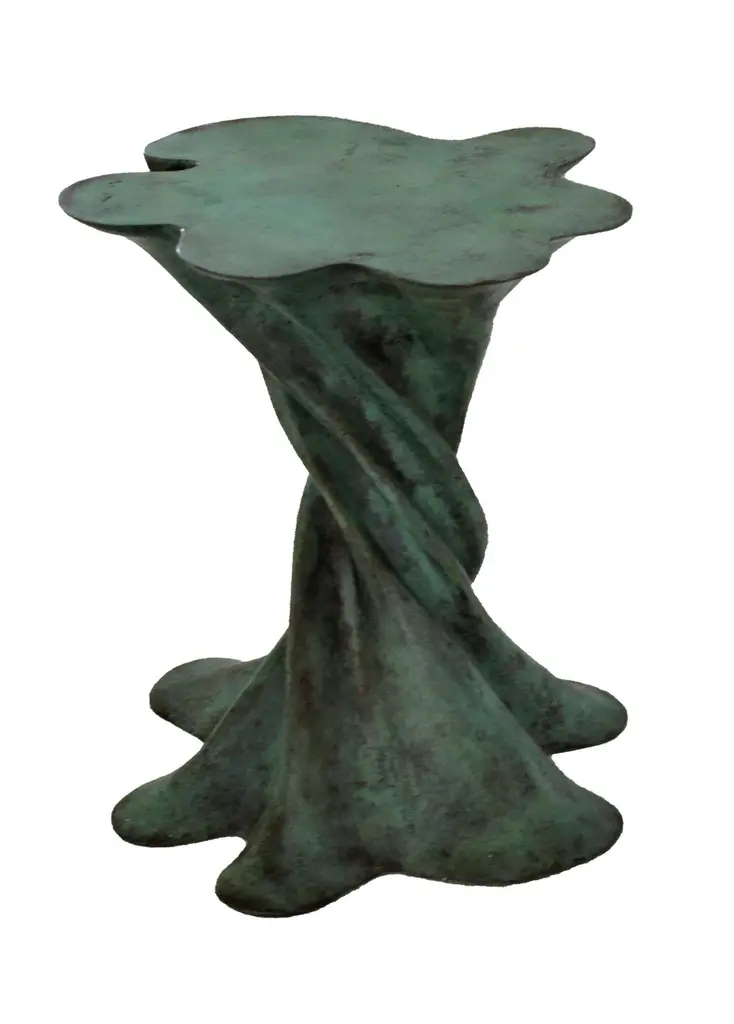 With her love of fabrics and her interest how they work in motion, Stephanie Odegard deisgned this table using the pleats in a dancer's skirt as an inspiration for the Waltz side table. Available in 9 different patinas over cast brass, this piece is undoubtedly stunning. Waltz Table Green PatinaSize- 14" x 14" x 18" H.Materials - Brass, Hand-CarvedBuyer Cancellation-The cancellation charge is 25% which increases to 50% if the production is started.Prices do not include shipping from India (for custom orders) or our MN warehouse (items from stock). That will be additional.