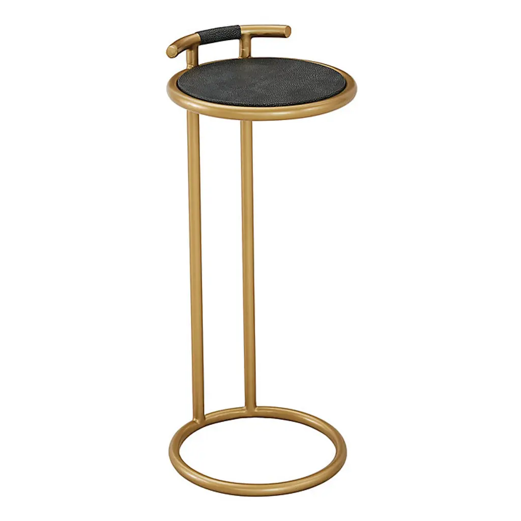 This chic martini table is dressed and ready to go wherever the party takes it. Our Warren Table is designed in a shapely “C” silhouette of brass finish iron with charcoal faux shagreen top. The matching handle and slender design make this small round table easy to tuck beside your chair or slip beneath the living room sofa. Warren C Table features: