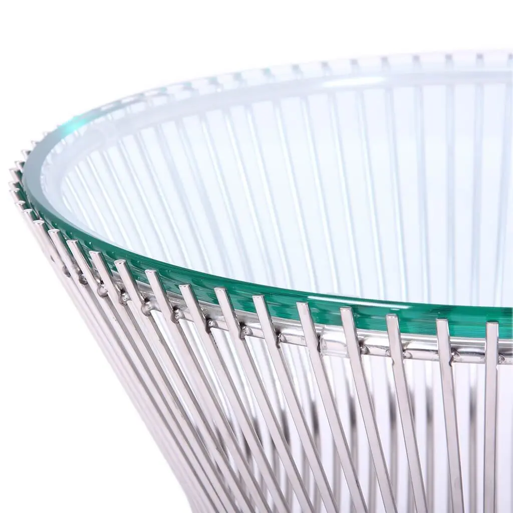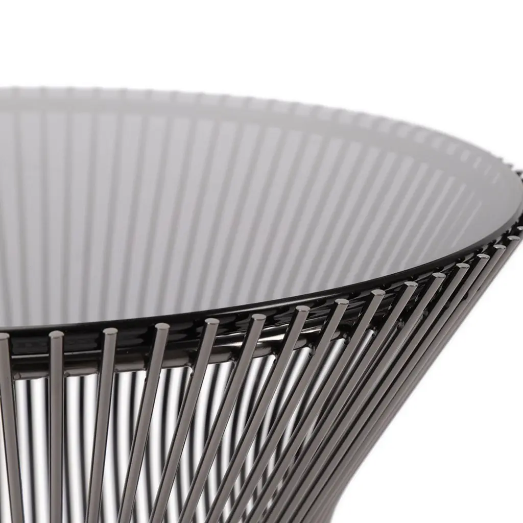 Inspired by the original 1966 Platner Collection designed by Warren Platner. The Platner Collection captured the"decorative, gentle, graceful" shapes that were beginning to infiltrate the modern vocabulary. The iconic side table is created by welding curved steel rods to circular frames, simultaneously serving as structure and ornament.