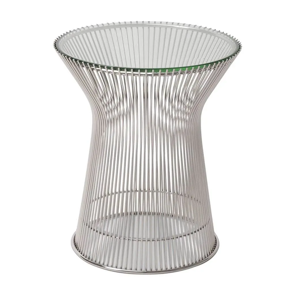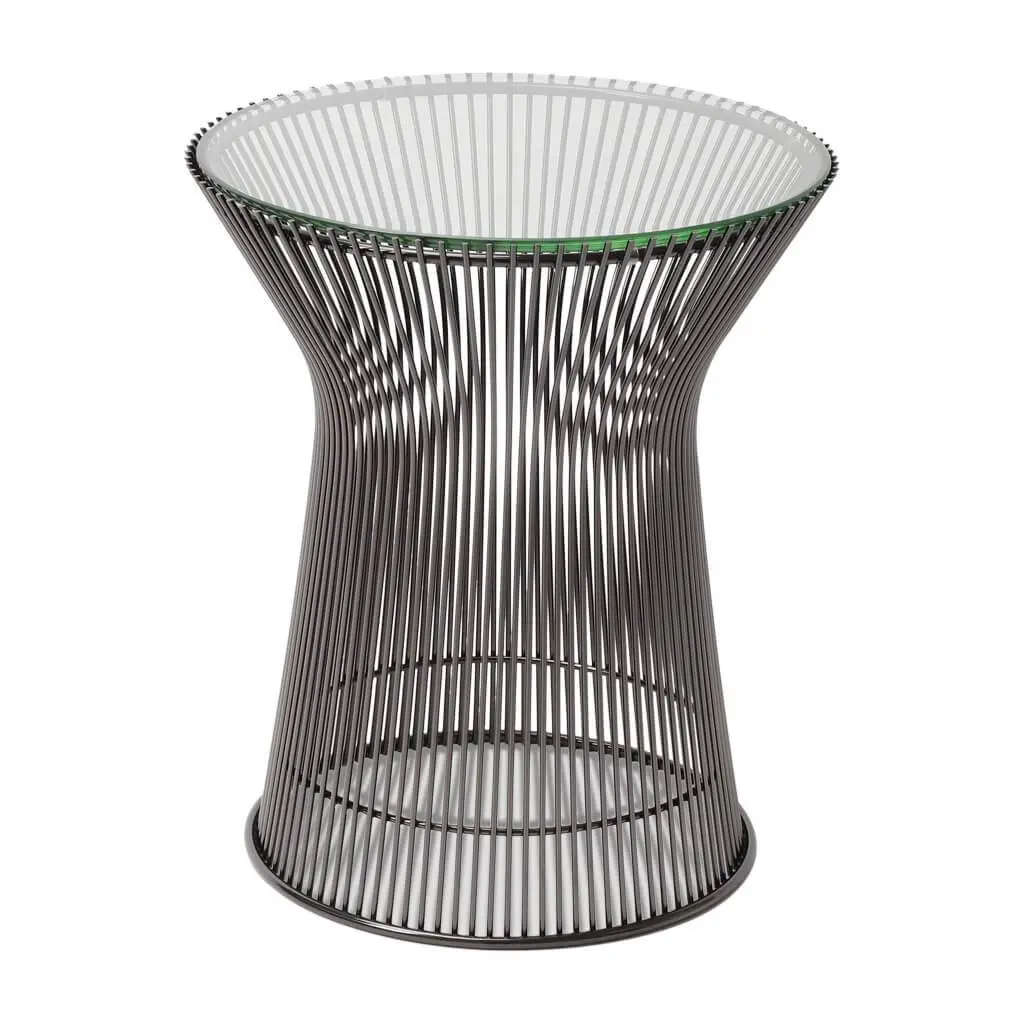 Inspired by the original 1966 Platner Collection designed by Warren Platner. The Platner Collection captured the"decorative, gentle, graceful" shapes that were beginning to infiltrate the modern vocabulary. The iconic side table is created by welding curved steel rods to circular frames, simultaneously serving as structure and ornament.