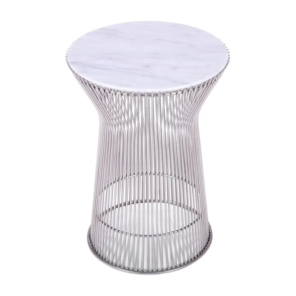 Inspired by the original 1966 Platner Collection designed by Warren Platner. The Platner Collection captured the"decorative, gentle, graceful" shapes that were beginning to infiltrate the modern vocabulary. The iconic side table is created by welding curved steel rods to circular frames, simultaneously serving as structure and ornament.