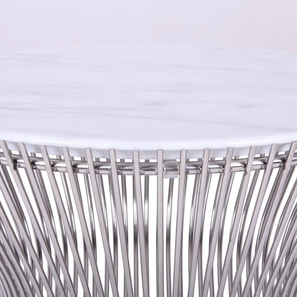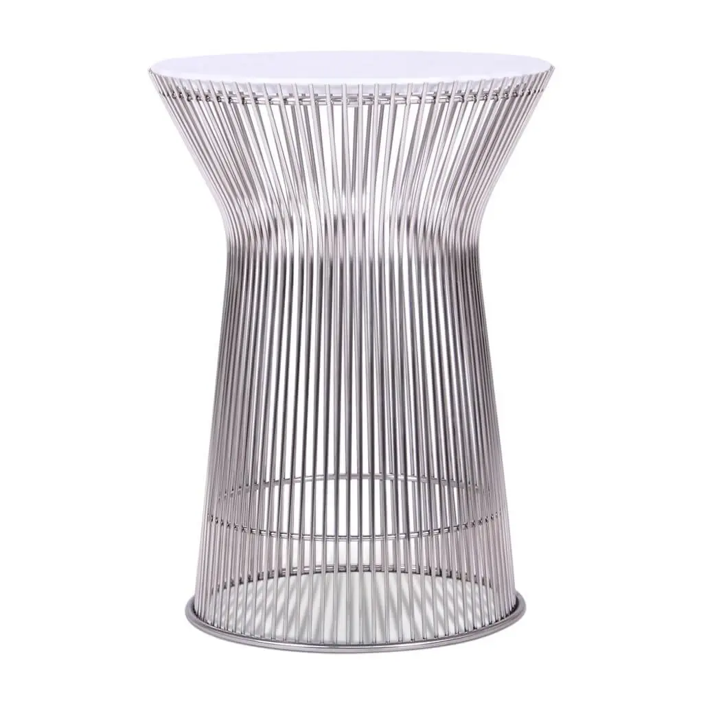 Inspired by the original 1966 Platner Collection designed by Warren Platner. The Platner Collection captured the"decorative, gentle, graceful" shapes that were beginning to infiltrate the modern vocabulary. The iconic side table is created by welding curved steel rods to circular frames, simultaneously serving as structure and ornament.