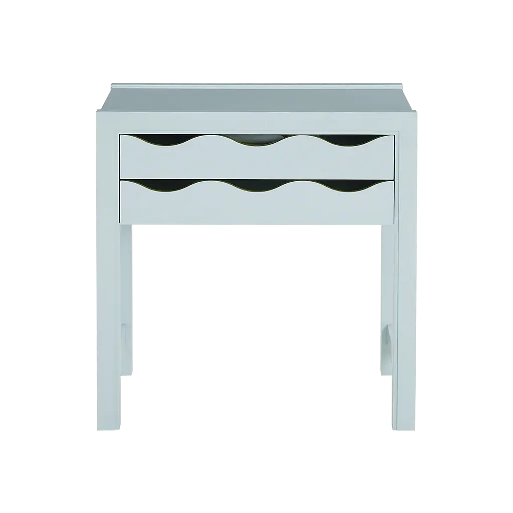 Dimensions: 28W x 20D x 28H Quintessentially oomph - the wave collection boasts beautiful craftsmanship combined with the whimsy you have come to know and love from oomph. The Wave Side Table - 2 soft close drawers, an exquisite lacquer finish inside and out, the only question is - what color combination will you chose? Made in America. { "@context": "https://schema.org/", "@type": "Product", "name": "Wave Side Table", "image": "https://oomphhome.s3.amazonaws.com/product_image/wave%2bside%2btable%2bbolero.png", "description": "Our most exciting collection to launch in quite some time. Quintessentially oomph - the wave collection boasts beautiful craftsmanship combined with the whimsy you have come to know and love from oomph. The Wave Console - 2 soft close drawers, an exquisite lacquer finish inside and out, the only question is - what color combination will you chose?", "brand": { "@type": "Brand", "name": "oomph" }, "offers": { "@type": "Offer", "url": "https://oomphhome.com/collections/new/products/wave-side-table", "priceCurrency": "USD", "price": "4075" } }
