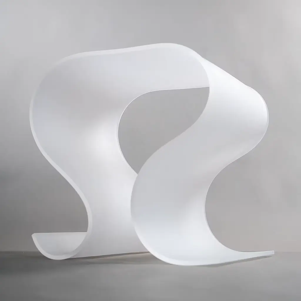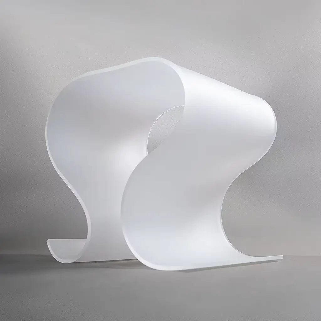 A fluid curve frozen in time is the poetic inspiration behind this stunning accent table. Deftly handcrafted by master artisans, its PMMA silhouette consists of a sinuous sheet with a freestanding design of striking sculptural impact. A special satin transparent finish enriches the white PMMA and underlines the ethereal charm this contemporary piece distills.