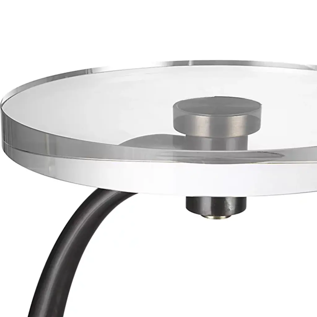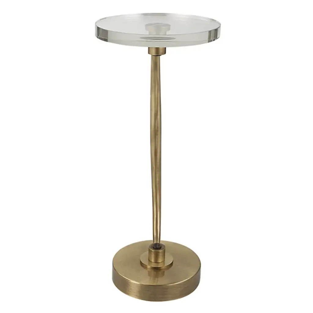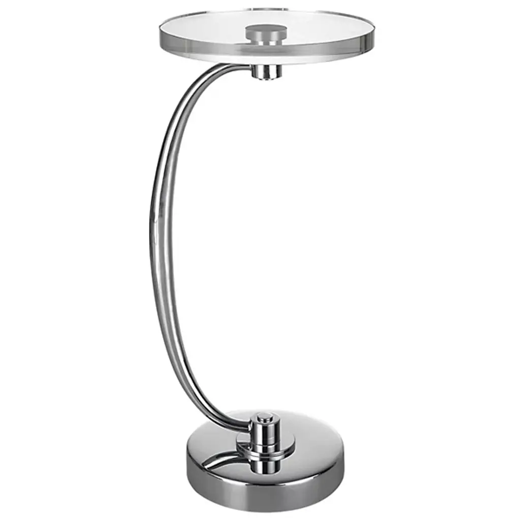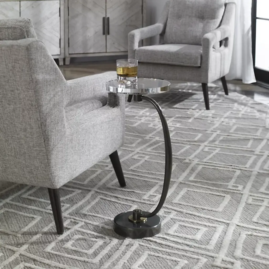 Cheers to the Waveney Drink Table from Uttermost. This streamlined table brings the allure of mid-century modern design to your living space. With its contoured and slender framework, it exudes elegance and sophistication. The circular tabletop, crafted from iron and adorned with a lovely crystal top that keeps your glasses in place, adds a touch of glamour to your room. Raise your glass and toast to the exquisite beauty of this decorative furnishment