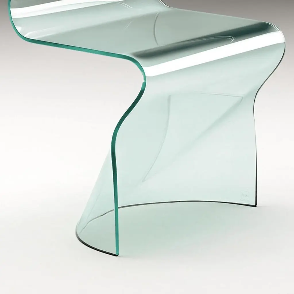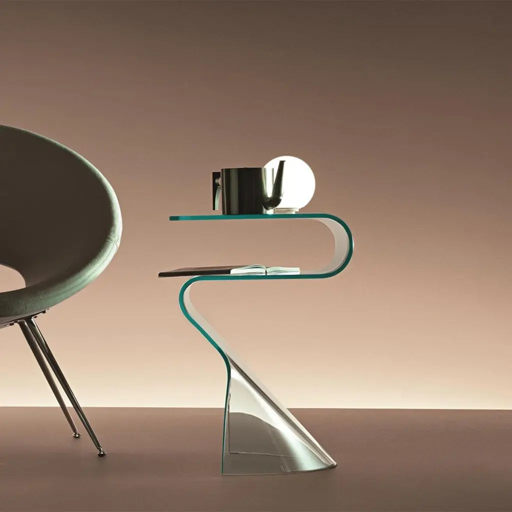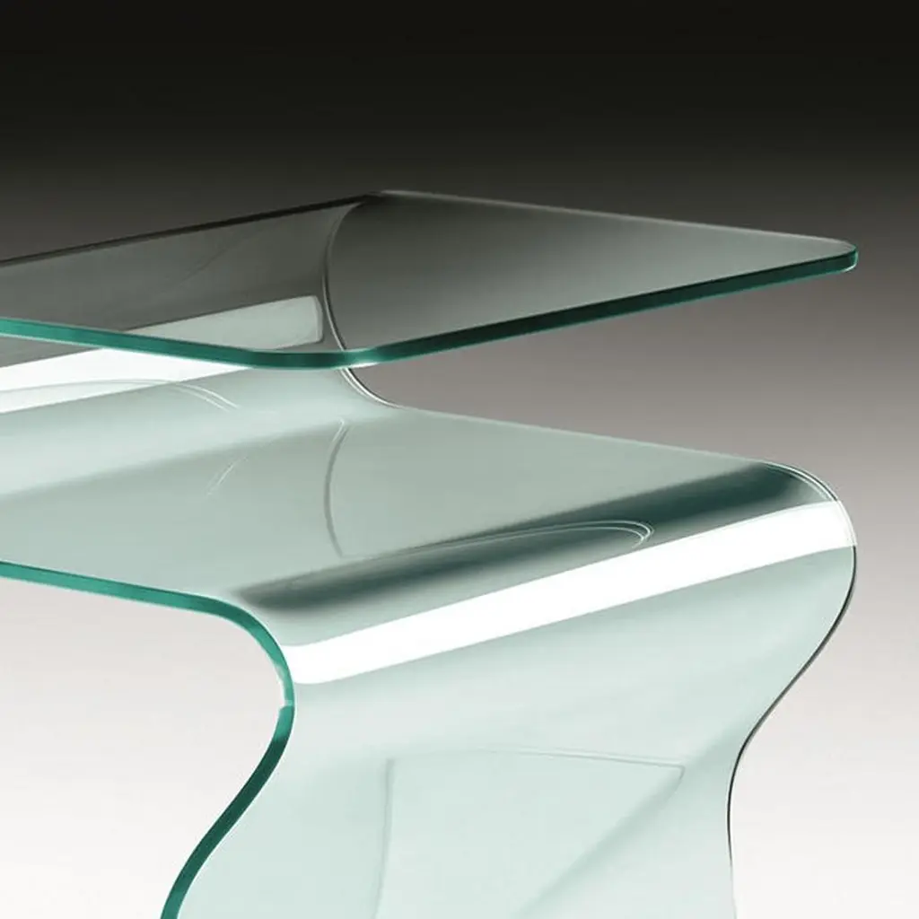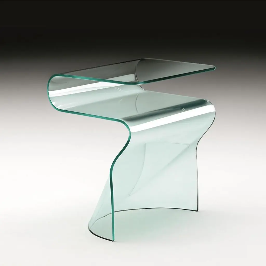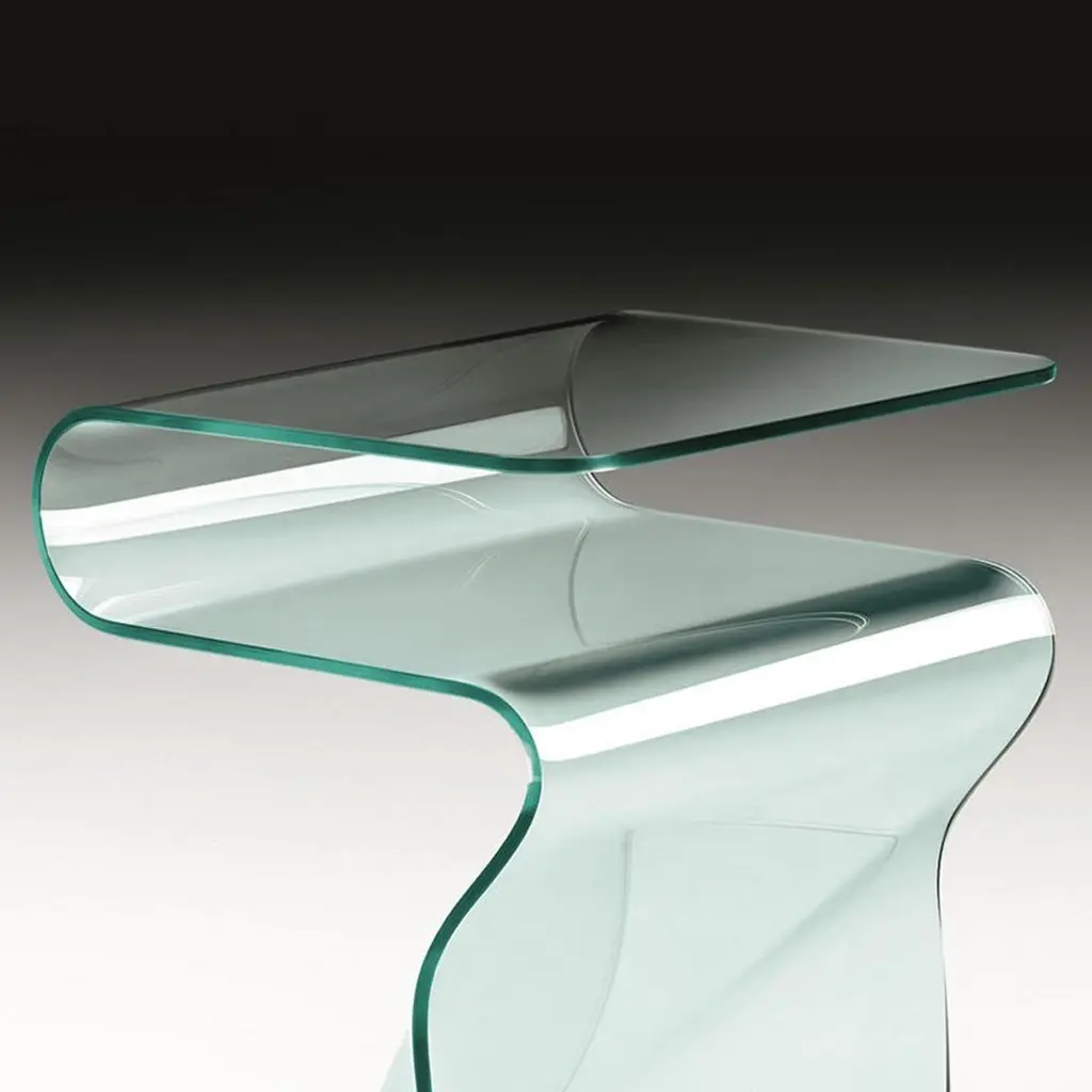 Side table wavy glass casted in one slab of curvedclear glass in 10 mm thickness. Subtle designed piece.