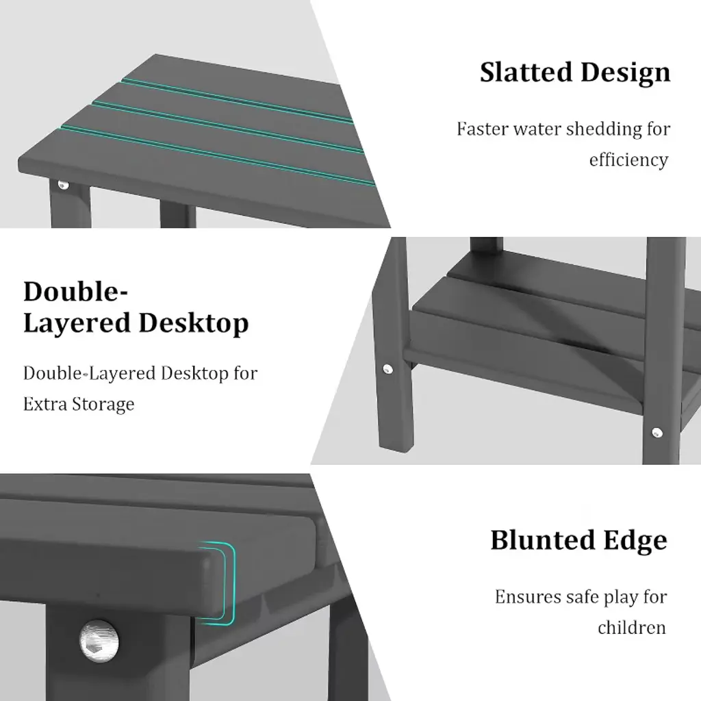 Weather Resistant Outdoor Side Table, Adirondack Hdpe Small Outdoor Table, 2-tier Small Patio Tables For Outside Or Indoor,gray