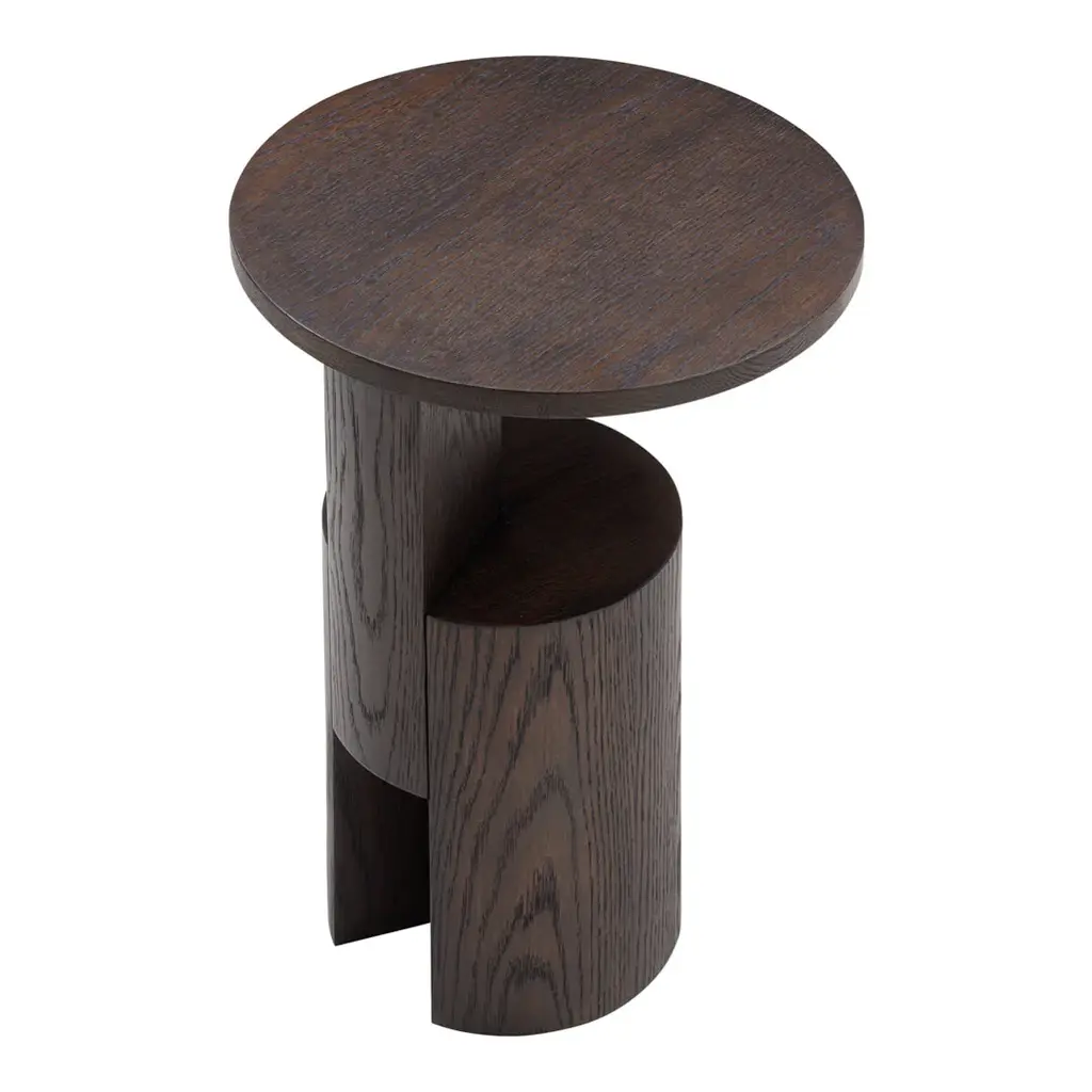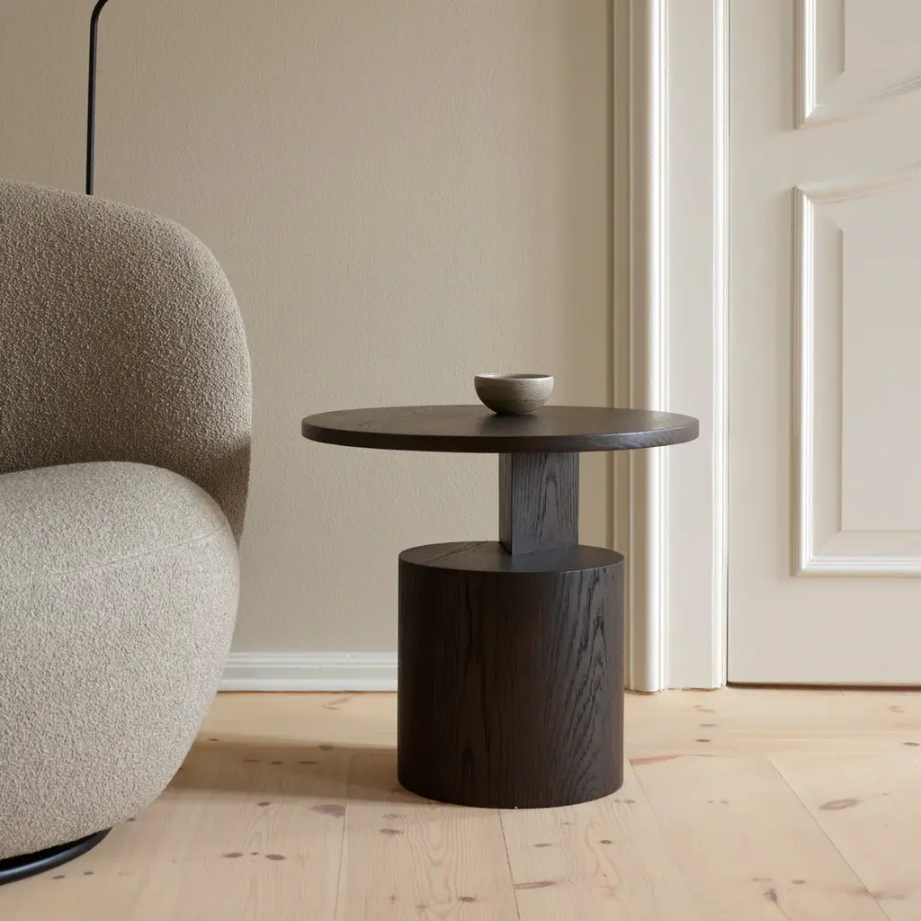 The Wedge Side Table reimagines geometric simplicity as functional sculpture, bringing Stockholm-based Note Design Studio's distinctive vision to contemporary living spaces. This ingenious designer side table transforms the familiar wedge shape into an architectural statement that balances playfulness with sophisticated minimalism. The table's defining characteristic is its dynamic, cake wedge-inspired silhouette that appears to elegantly float above its sculptural base. This thoughtful design creates not only striking visual interest but also incorporates a practical plateau within the basea clever detail that provides additional surface space for small essentials while maintaining the table's clean lines. Crafted in either rich black or warm dark brown stained oak veneer, the Wedge Side Table's premium materials enhance its tactile appeal and ensure seamless integration with Wendelbo's modern aesthetic. Available in two complementary sizes, the table offers versatile styling optionscommand attention as a standalone focal point or create visual rhythm by pairing both sizes together. Note Design Studio's philosophy of "transforming non-material values into tactile objects" is perfectly expressed in this piece, which transcends pure functionality to become a conversation-starting design element. The Wedge Side Table exemplifies contemporary Scandinavian designwhere purposeful innovation and refined craftsmanship converge to enhance the modern interior landscape.