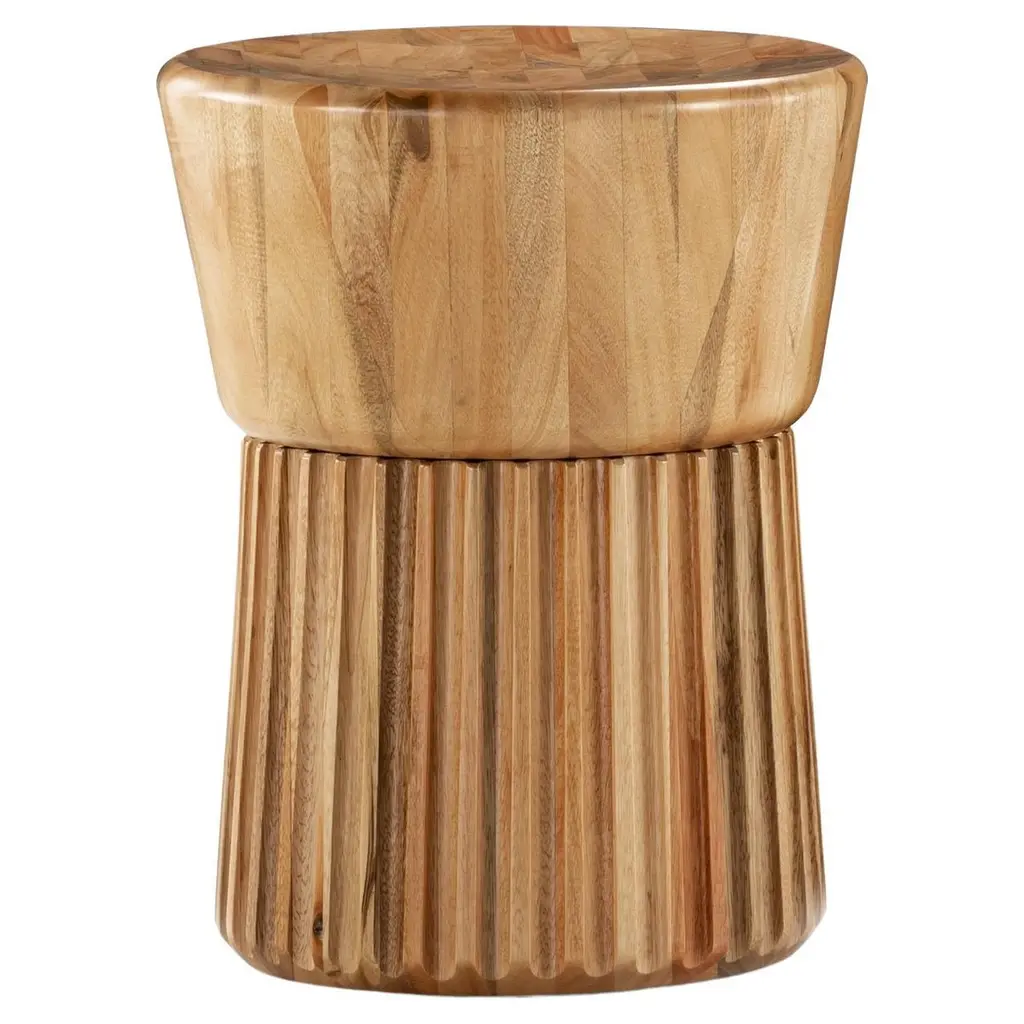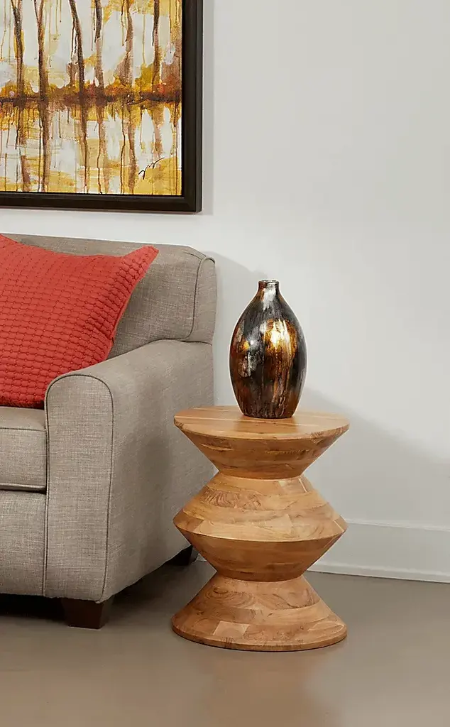 This Weraplace end table, with its unique accordion-like design, is a true masterpiece. Constructed entirely of solid Acacia wood, its light natural finish beautifully highlights the intricate wood graining. The circular top is an excellent location to showcase small accessories, allowing you to add an extra touch of elegance to your overall decor. Customer assembly is required.