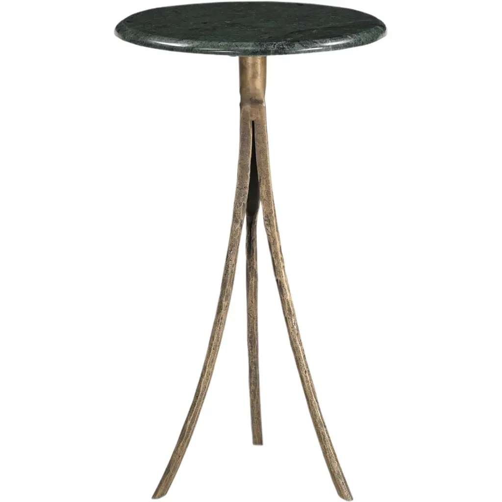 The West Accent Table embodies modern sophistication with its stunning marble top and iron base. Its three-legged design, featuring hammered texture details, adds a touch of uniqueness to any room. Crafted from natural marble and hammered metal, each piece boasts its own distinctive characteristics, making it a truly one-of-a-kind addition to your space.