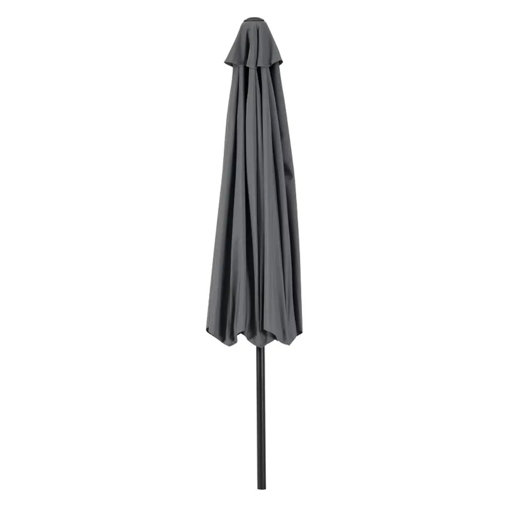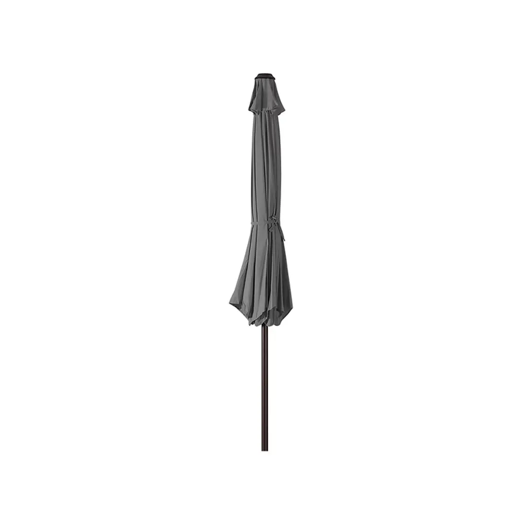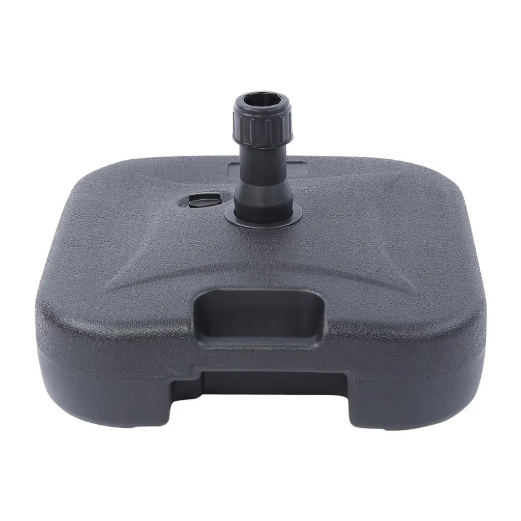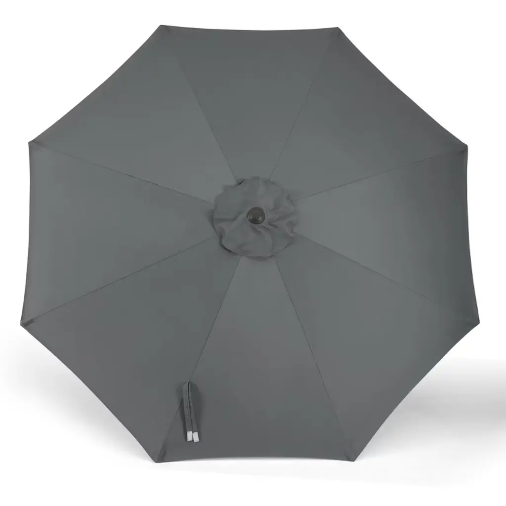 Stay in the shade this summer with this beautiful 9 ft. umbrella. Made of a solid-colored polyester canopy that shields you from harmful UV rays and has a weather and water-resistant treatment to keep the canopy looking great each season. To keep you safe from the sun, the weather-resistant pole has a simple crank lift and a manual push-button tilt to open the umbrella with ease and adjust the canopy to block the sun. There is no need to search for the ideal base because a base includes a lovely HDPE fillable base with a convenient handle.While we strive to accurately represent product colors, please be aware that actual colors may vary slightly due to individual screen settings and lighting conditions. FeaturesSet includes: one (1) 9 ft market umbrella one (1) fillable baseWeather and water resistant polyester canopySimple crank lift and push button tiltDurable aluminum pole and steel frameHDPE fillable 50 lb baseDetails:Product Type: Patio Umbrella & BaseWhat's Included: (1) Umbrella; (1) Umbrella BaseUmbrella BaseDimensions: 18" W x 18" D x 10.5" HWeight: 3.25 lbs.Weight: 12 lbs.Pole Diameter: 1.5"UmbrellaOverall Height: 92.25"Canopy Width: 108".