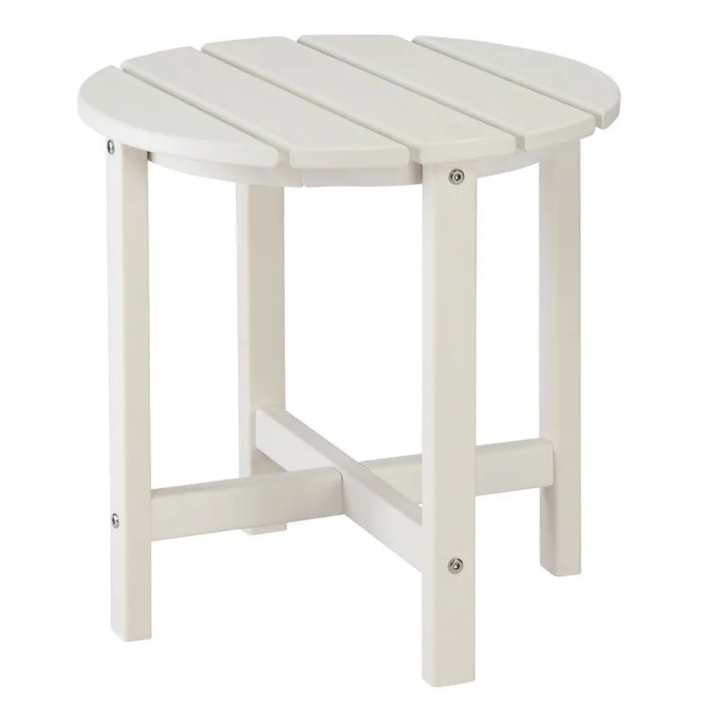 A practical yet fashionable patio side table will finish off your style, bring your space together, and create an inviting area. This side table's (18") minimalistic and wood-like design makes it the perfect addition to complement any space inside your home or outdoors. Made with a durable HDPE that is perfect for the outdoor with it's resistance to weather and UV rays. Keep the beautiful color each season thanks to the fade resistant colors.While we strive to accurately represent product colors, please be aware that actual colors may vary slightly due to individual screen settings and lighting conditions. FeaturesWeather resistant HDPE lumberUV and fade resistant protects the chair and vibrant color all seasonResistant to splinters, cracks, and peelingSimple to assembleSimple to clean with just soap and waterDiverse selection of colors for any type of settingDetails:Product Type: Patio Side TablesWhat's Included: (1) Side TableSide TableDimensions: 17.5" W x 17.5" D x 18" HWeight: 10.5 lbs.Weight Capacity: 180 lbs.