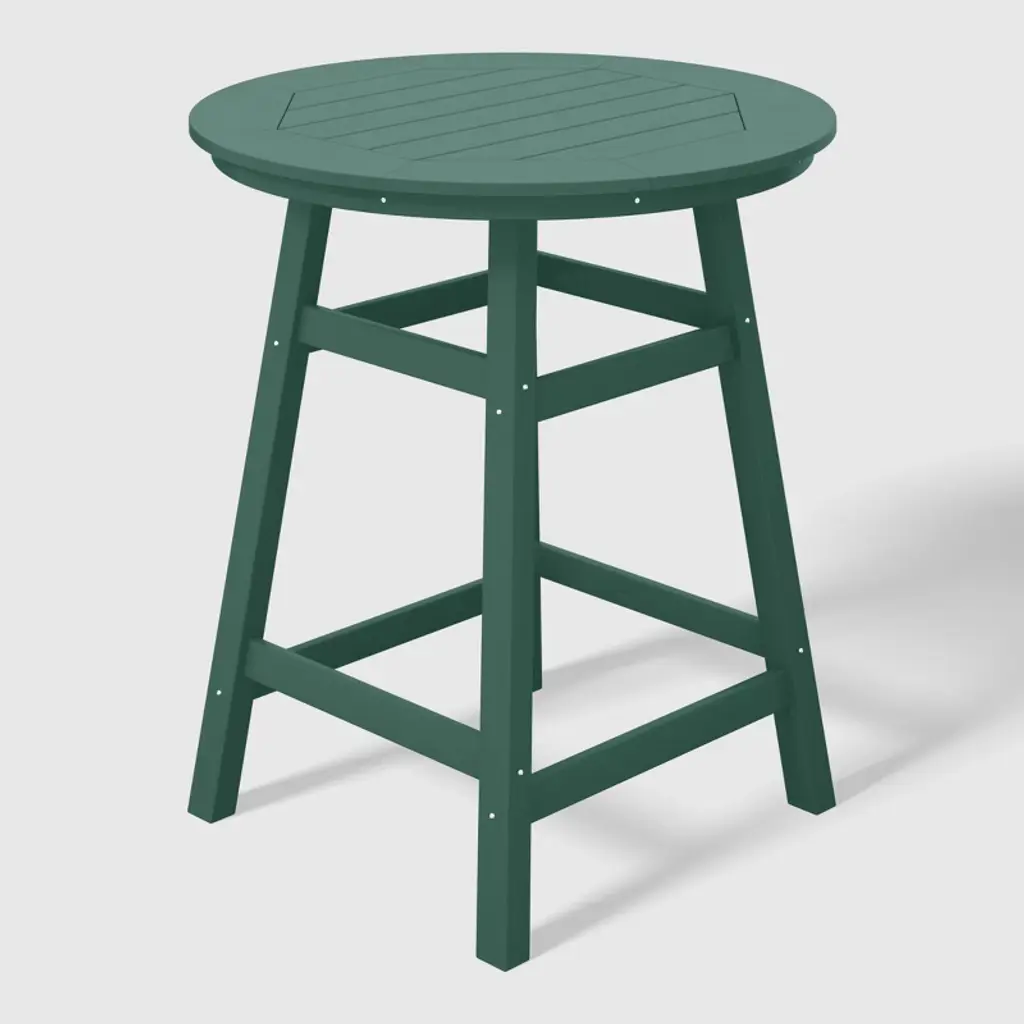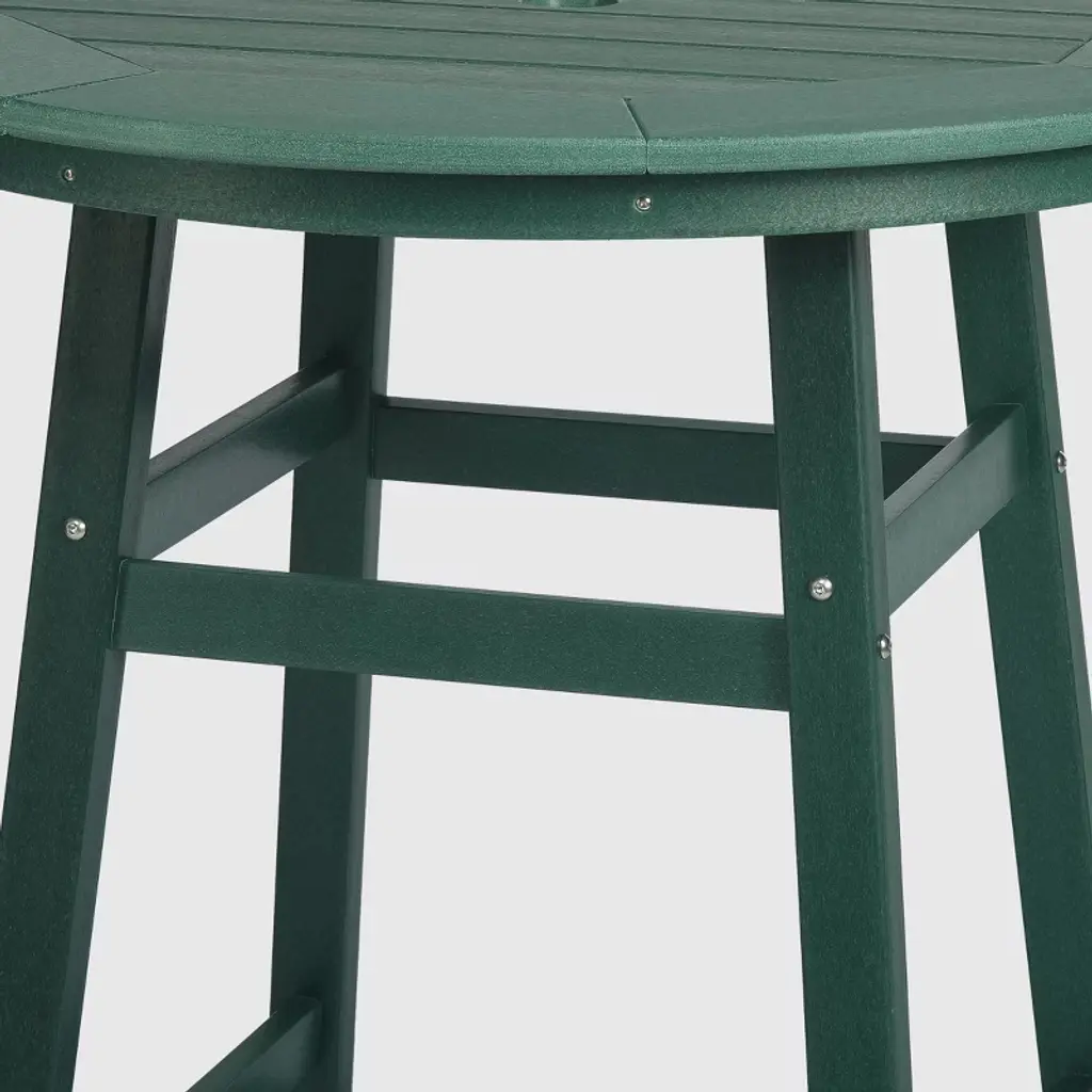 Upgrade your outdoor dining setup with our stylish 35" round counter high table—an ideal pick for relaxed garden or backyard bar patio gatherings. Crafted from weather-resistant materials, it's ready for anything nature throws its way. host effortlessly year-round, thanks to the durable HDPE material that resists UV and fading, ensuring your chic bistro bar table stays vibrant. The slatted and octagonal inner tabletop design, paired with its round shape, adds a touch of character, complete with a handy umbrella hole for those sunny days. This versatile bistro bar table is perfect for casual get-togethers with loved ones and friends this spring.While we strive to accurately represent product colors, please be aware that actual colors may vary slightly due to individual screen settings and lighting conditions. FeaturesConstructed from robust and environmentally friendly HDPE materialWeather resistant to protect against the harsh outdoor elementsFade and UV resistant to protect against the sunA-frame leg design adds stability2" Diameter umbrella hole to fit up to 1.9" umbrella polesStainless steel hardware prevents rustOctagon-shaped inner table top with slatted designDetails:Product Type: Patio Bar TablesWhat's Included: (1) Counter TableCounter TableDimensions: 35" W x 35" D x 37" HWeight: 47.25 lbs.Weight Capacity: 300 lbs.