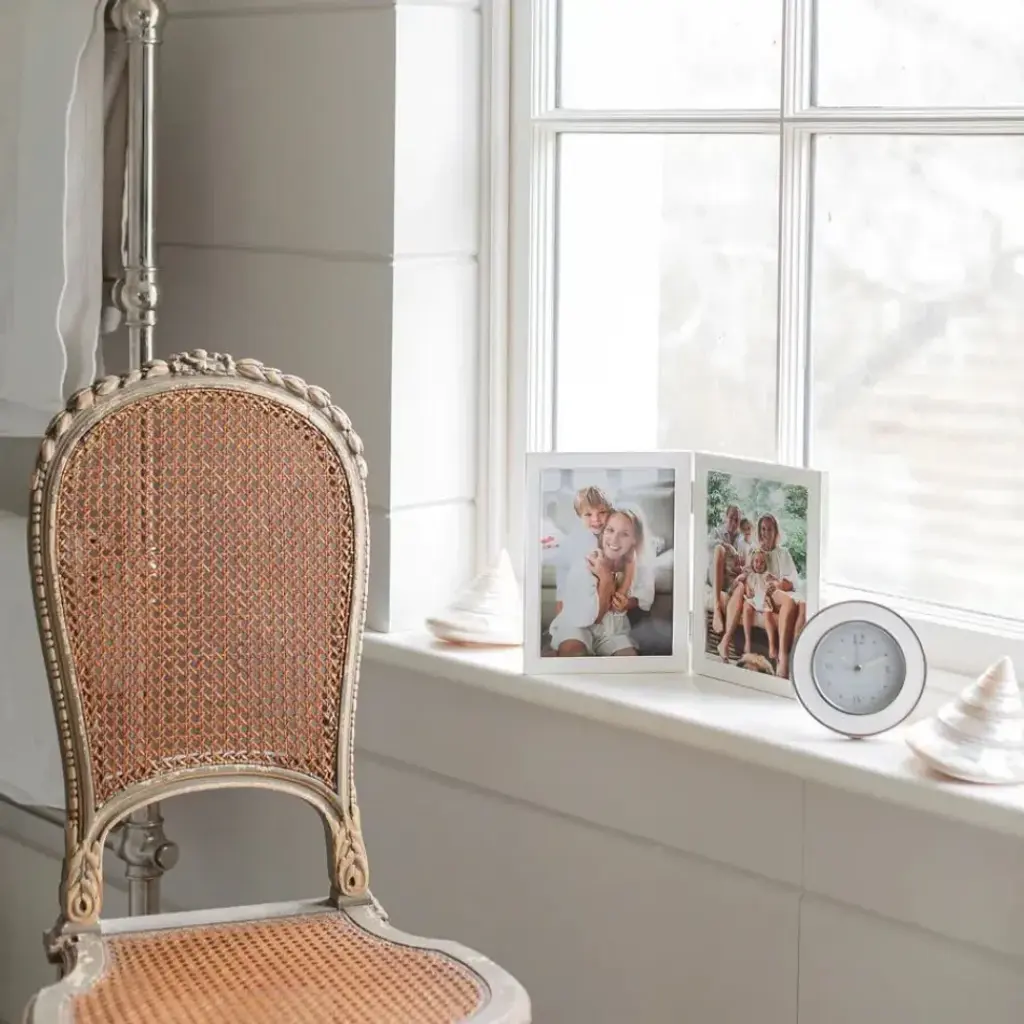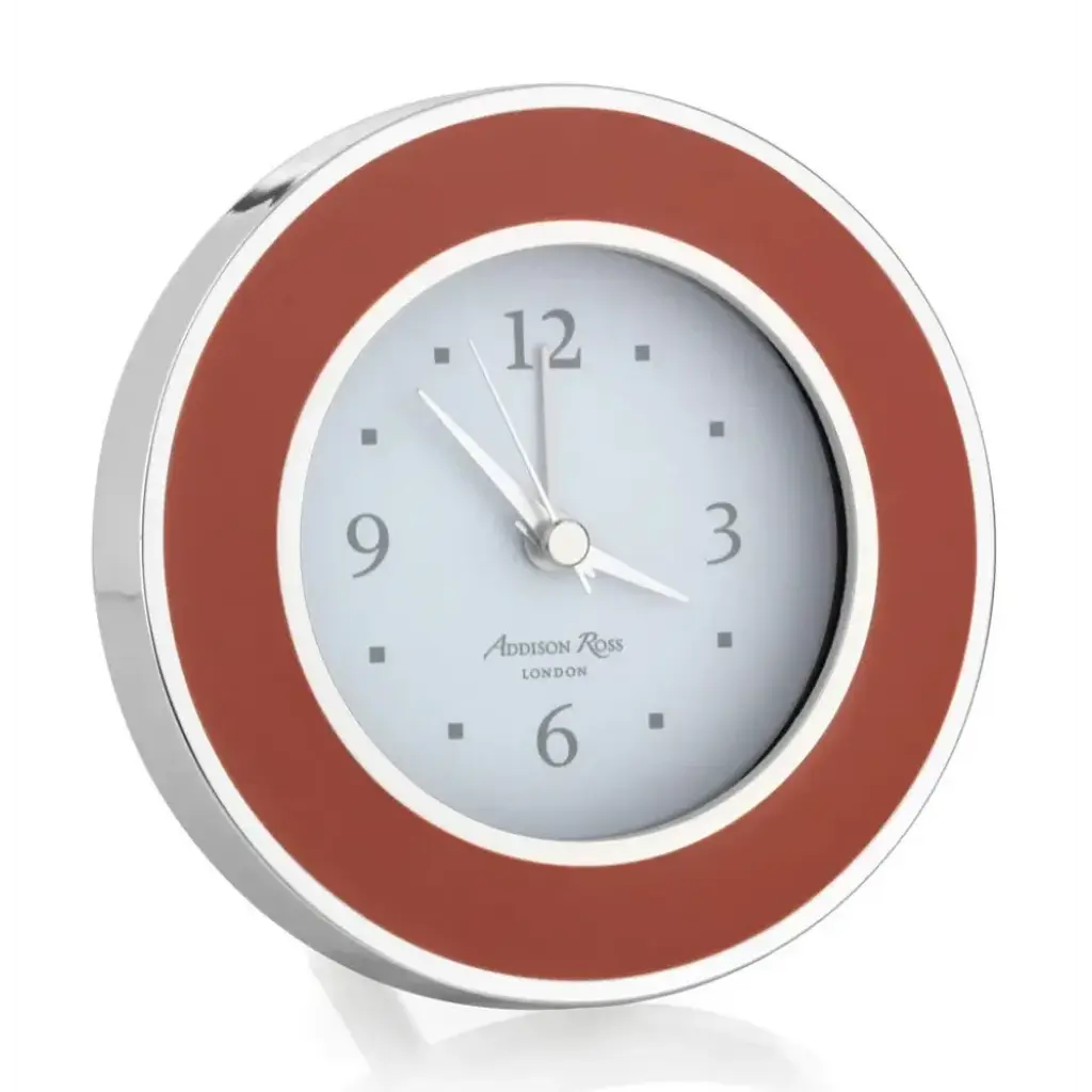 Our white enamel alarm clock beautifully compliments our enamel frames, complete with an alarm function, this clock is ideal for a bedside table or desk. Backed in luxury grey velvet with a silver clock movement cover.
