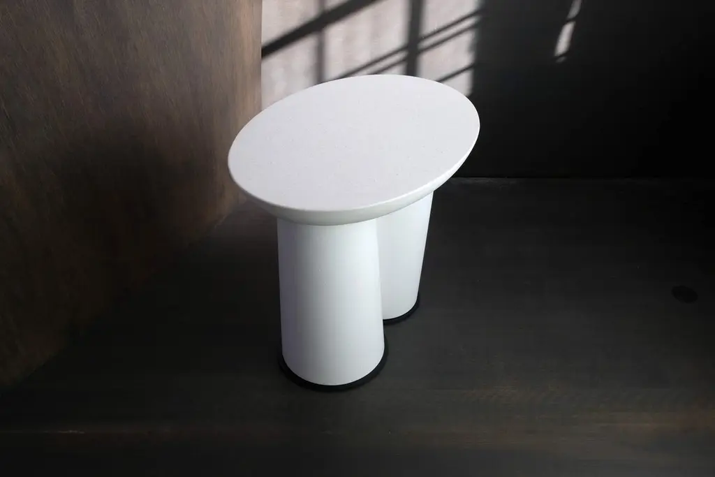 White Oval Side Table Femme Organic Modern Cast Stone By Alentes Atelier