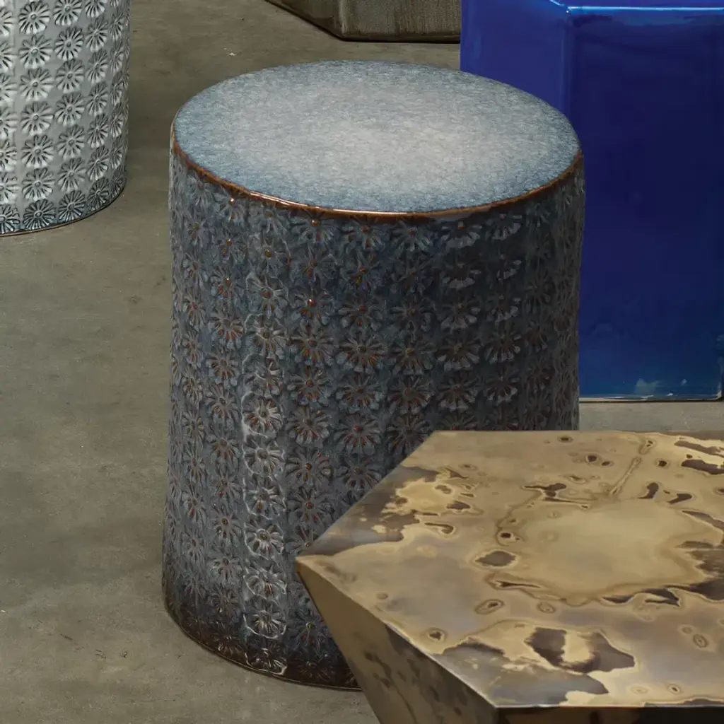 Wildflower Ceramic Side Table, Blue
