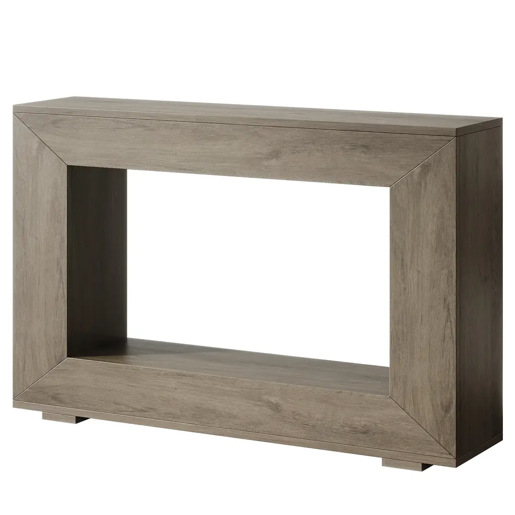 Transform your home with the 47” Grey Farmhouse Console Table with Storage, a versatile and elegant addition crafted for modern interiors. Inspired by farmhouse aesthetics, this vintage industrial accent table features a natural grey wood grain finish with distressed detailing, creating a warm and inviting atmosphere perfect for living rooms, hallways, foyers, or entryways.. Measuring 47.2”L x 11.8”D x 32.8”H, it offers a wide surface and an open lower shelf for ample storage, keeping your space clutter-free while showcasing decor items like lamps, books, or baskets.. Constructed from high-density P2-grade particleboard and reinforced with sturdy metal legs featuring anti-scratch foot pads, this console table supports up to 110 lbs on the tabletop and 60 lbs on the shelf, ensuring durability for daily use. Its multifunctional design adapts seamlessly as a sofa table, entryway piece, or accent furniture.. Rustic Farmhouse Aesthetic -Crafted with a natural grey wood grain, this console table brings classic farmhouse charm and a cozy, welcoming vibe to any home entryway, hallway, or living space.. Versatile Multi-Use Design - Perfect as an entryway table, hallway console, or sofa back table, this piece serves as functional furniture for placing lamps, books, baskets, or seasonal decor.. Space-Saving, Functional Layout - Measuring 47.2" L x 11.8" D x 32.8" H, this slim-profile table fits snugly against walls or behind sofas, offering a wide surface and open lower shelf for extra storage without taking up valuable space.. Durable Build, Reliable Performance - Made with P2-grade engineered wood and reinforced construction, this table supports up to 110 lbs on the tabletop and 60 lbs on the lower shelf—ideal for daily use and decorative displays.. Ample Open Storage Shelf - The lower tier provides generous open storage for baskets, books, storage bins, or shoes—keeping your space neat and organized while adding functional beauty.