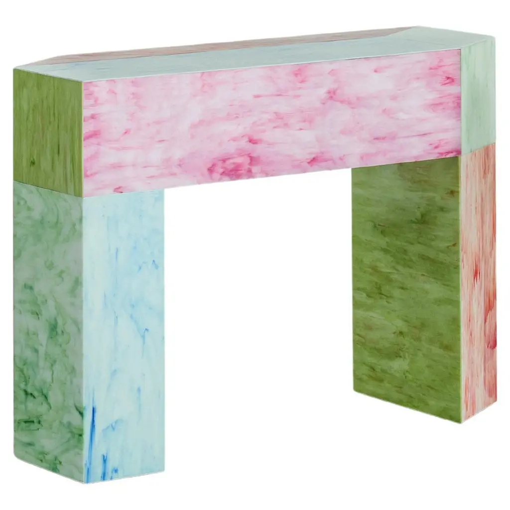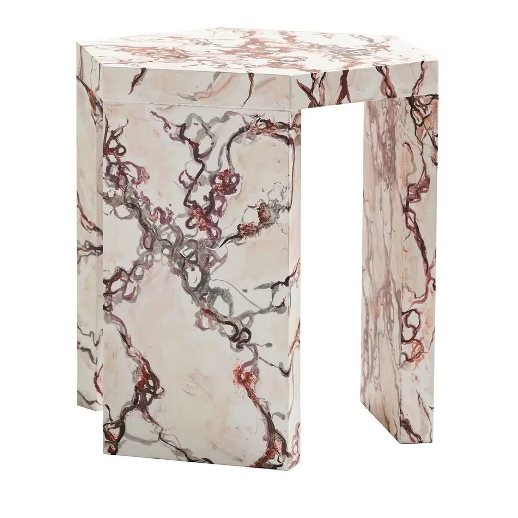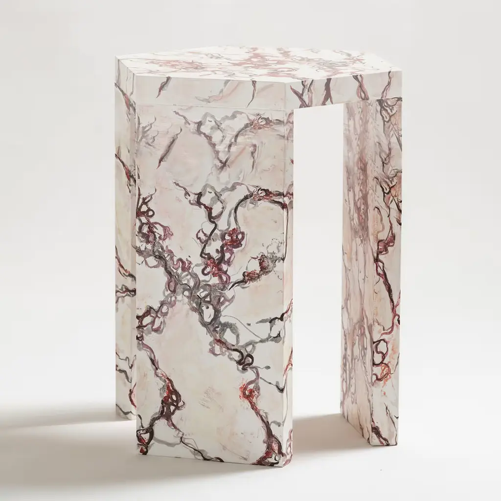 Inspired by fine Italian marble, this coffee table is meticulously crafted through the fusion of minimalist design principles and ancient artistic traditions. With 4 cm thick composite elements, this modular side table is both solid and functional, with a wooden frame coated with solvent-catalyzed paint, a polyurethane base, and an acrylic finish. The chair's lightness and elegance, combined with its innovative design, result in an eye-catching art piece.