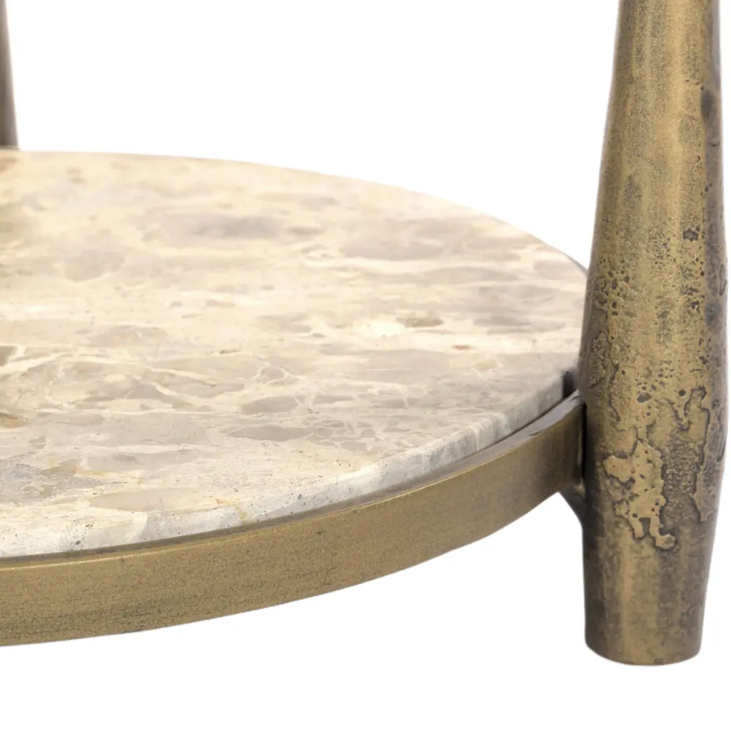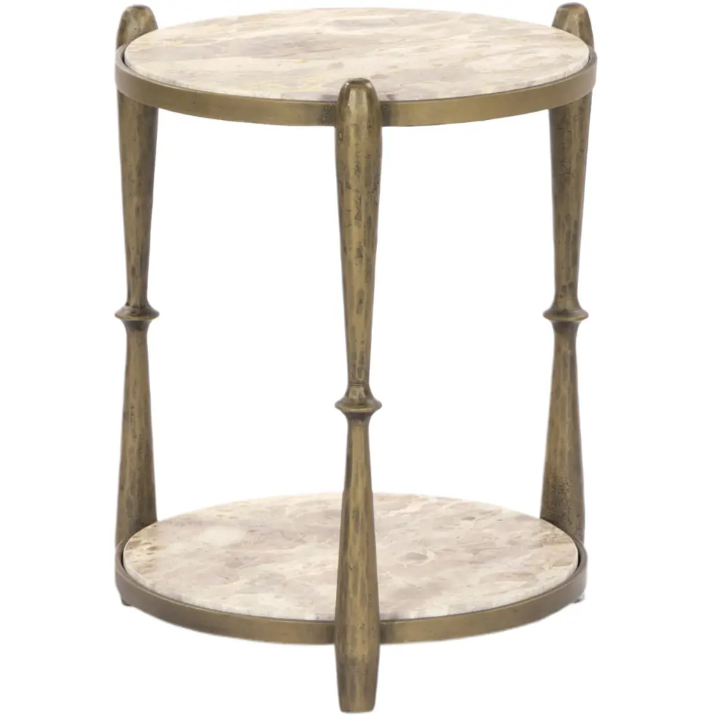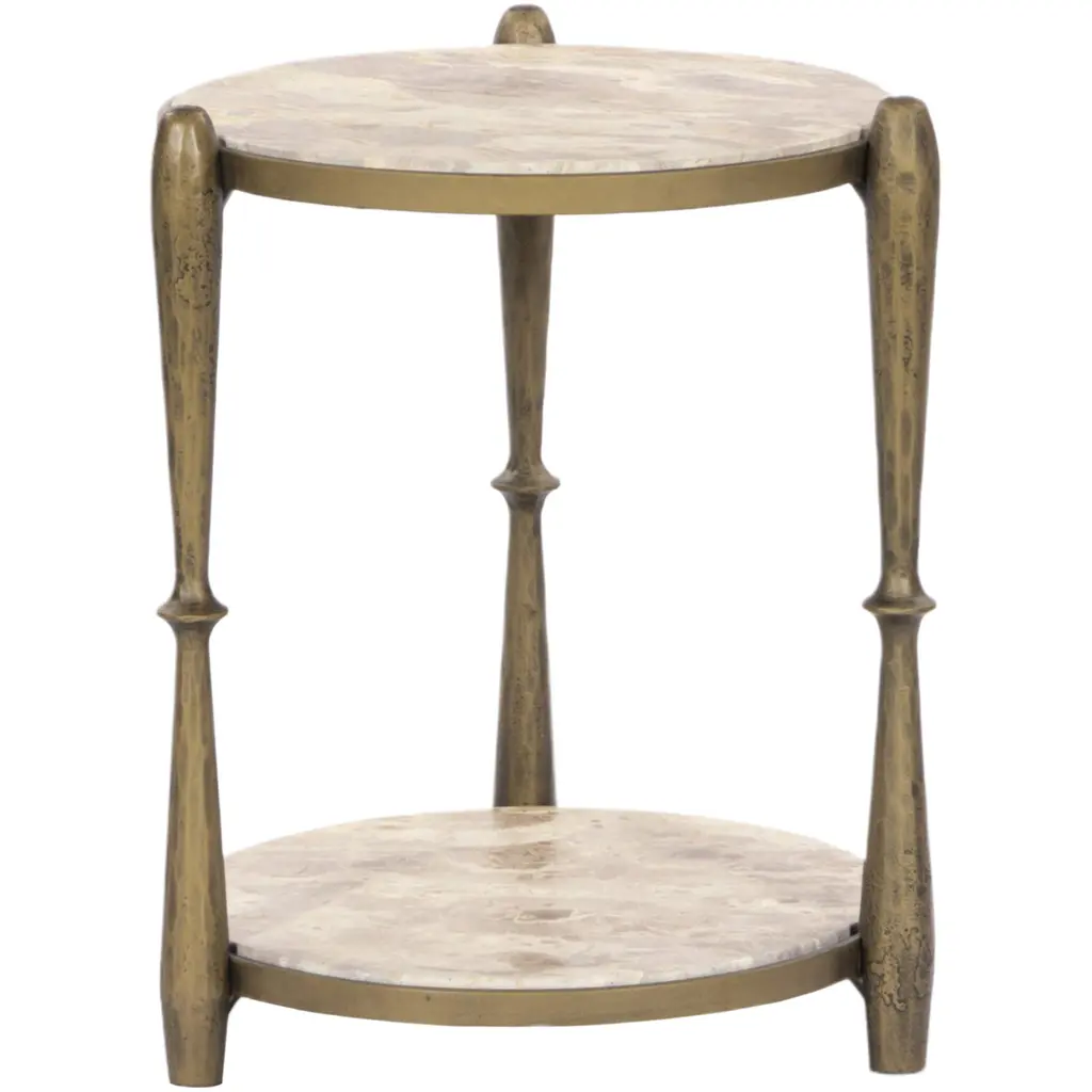 Introduce a touch of heritage-inspired elegance to your living space with the Winscott End Table. This beautifully crafted piece features a tiered design with iron legs and inset marble shelves, offering both functionality and style. The turn-style legs and fine details of this end table bring an elevated, artisan look to any room. It's perfectly sized to keep your favorite book or drink within easy reach, making it a practical yet sophisticated addition to your home decor.