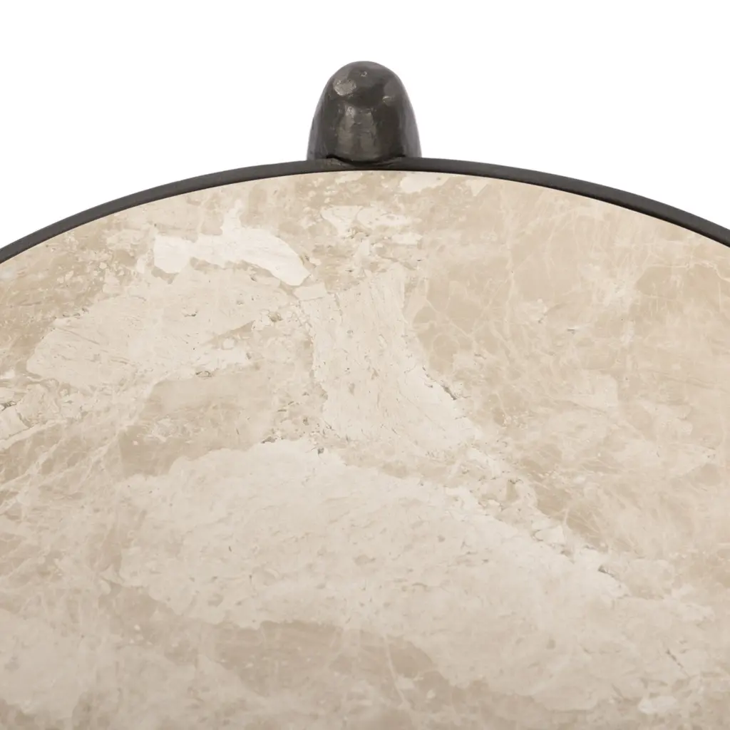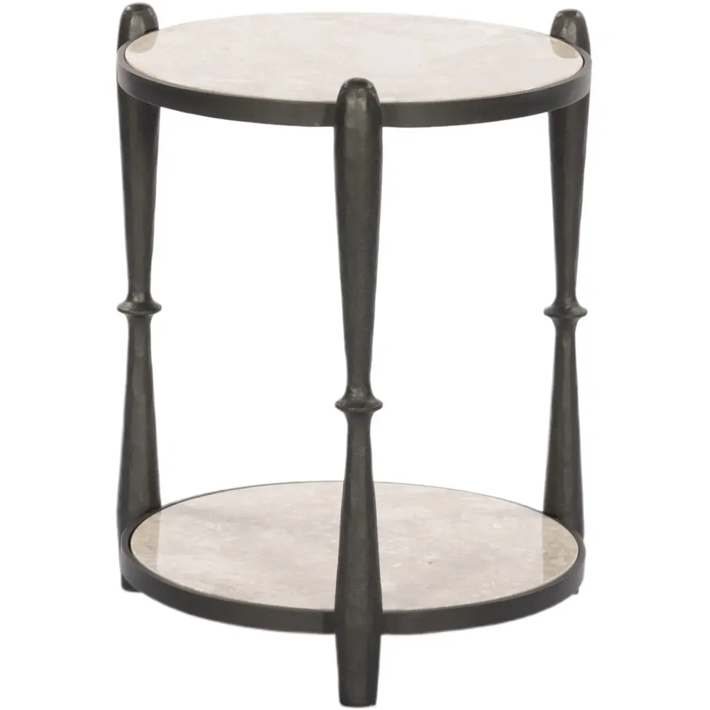 Introduce a touch of heritage-inspired elegance to your living space with the Winscott End Table. This beautifully crafted piece features a tiered design with iron legs and inset marble shelves, offering both functionality and style. The turn-style legs and fine details of this end table bring an elevated, artisan look to any room. It's perfectly sized to keep your favorite book or drink within easy reach, making it a practical yet sophisticated addition to your home decor.