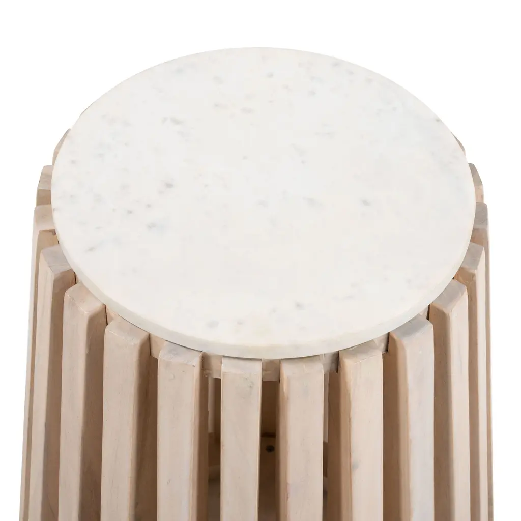 Winslow Round White Marble Top And Slatted Wood Side Table