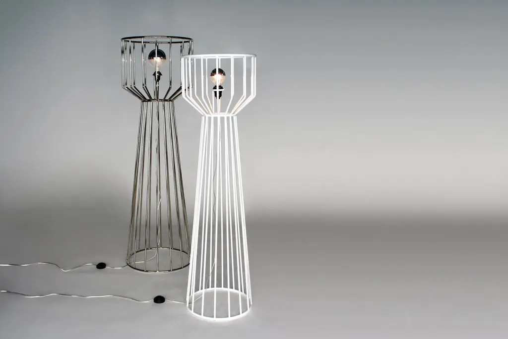 Wired Tall Floor Light by Phase DesignDimensions: Ø 47 x H 152.4 cm. Materials: Powder-coated metal.Solid steel bar available in gloss or flat black and white powder coat, polished chrome, burnt copper, or smoked brass finish. Powder coat finishes are available in custom colors. Prices may vary. Please contact us.All our lamps can be wired according to each country. If sold to the USA it will be wired for the USA for instance.The Wired Floor Lights add drama and intrigue to any environment. The shell of the two Wired Side Tables function as the housing for the lighting element and stretch from there to the floor, creating a commanding presence. The lights are available in two lengths; 54" and 60" towers. By experimenting with different bulbs, dramatic shadow effects can be created. Indoor use only.Autodidact award-winning designer Reza Feiz has always been drawn to the strength in simplicity. Lured to Southern California by its inventive, creative spirit, he quickly discovered his true calling among the vast community of creators and artisans whose skills and ingenuity expertly transform imagination into reality.Inspired by Los Angeles’ iconic landscape and the compelling beauty of the places and spaces he encountered, he envisioned furniture, lighting and tabletop accessories, fabricating them from contemporary materials with the help of a tightly knit coterie of craftspeople.The resulting restrained yet revolutionary pieces have garnered enthusiasm from an international audience.He’s been lauded as “An American designer who influences world design”, a “Style Pioneer” and “One of a group of select young designers who represent the leading edge of discovery in design.” Architectural Digest’s Mayer Rus noted that his “wide-ranging collections make a strong case for the enduring appeal of restrained modern design.” Surface Magazine raved that he “imbues his work with a 21st-century edge. His astute sense of restraint keeps the designs relevant in a constantly evolving industry, without needing to subscribe to trends.”“Reza Feiz imbues his work with a 21st-century edge. His astute sense of restraint keeps the designs relevant in a constantly evolving industry, without needing to subscribe to trends.”