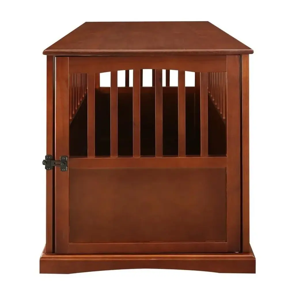 Multifunctional Design: This furniture style dog crate offers storage underneath to merge a crate with a cabinet. The top allows you to place anything from flowers to books on the flat surface, while the lower storage offers a place for items you want to stow away. Do more with one cage. The drawer with a bowl preserves floor space and keeps the food hidden when it's not time to eat.Cushioned Inside: A softly cushioned bottom with foam makes this dog kennel table ultra-cozy. Offering restful nights, the foam allows support and superior comfort for your lovely pet to relax and lounge. The pillow is covered in removable and machine-washable fabric for easy cleanliness.Double Doors: Our dog kennel end table features a latch that keeps your pet securely contained if you need to leave the house. Also, a large entryway with double doors makes it easy for your fur baby to enter and exit.Tough Wooden Structure: Single railings instead of crossed wires make it easy to see inside and out, and chew-tough pinewood ensures resistance to everyday wear and tear.Wooden Dog Kennel Info: Overall Dimensions: 37.5" L x 22.75" W x 27.5" H. Interior: 24.5" L x 20.5" W x 24" H. Bowl Capacity: 13.5 oz. Suitable for Small Dogs Less Than 13.75" in Length and Under 22 lbs. in Weight. Assembly Required.