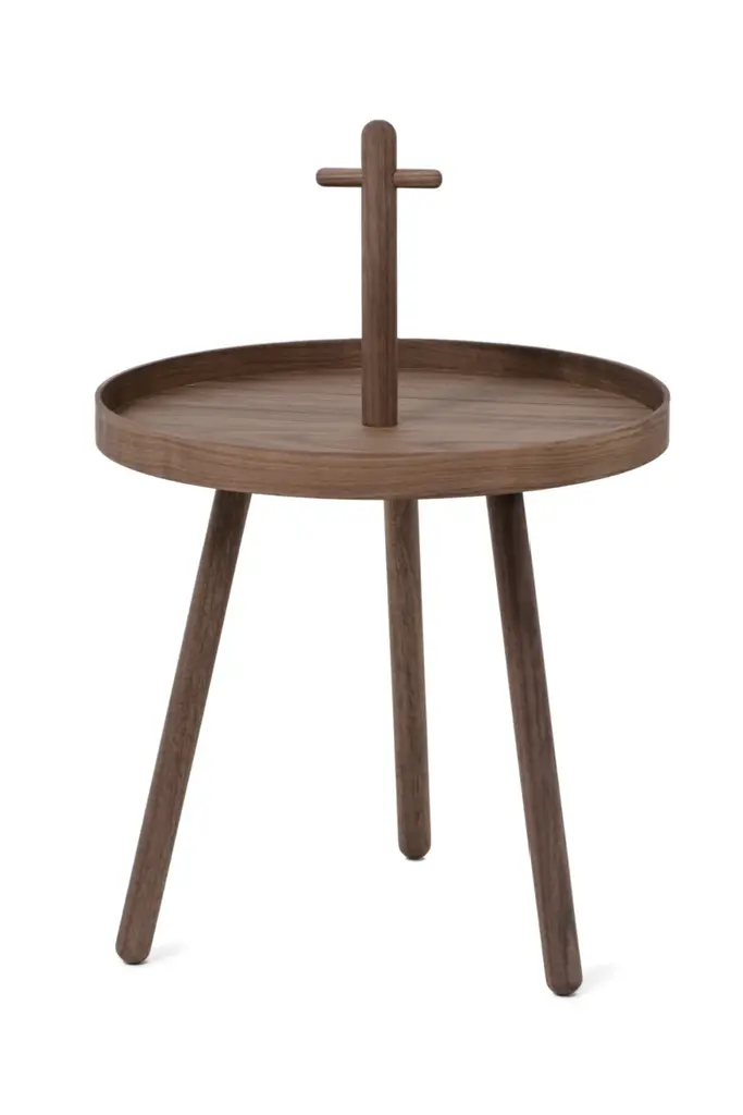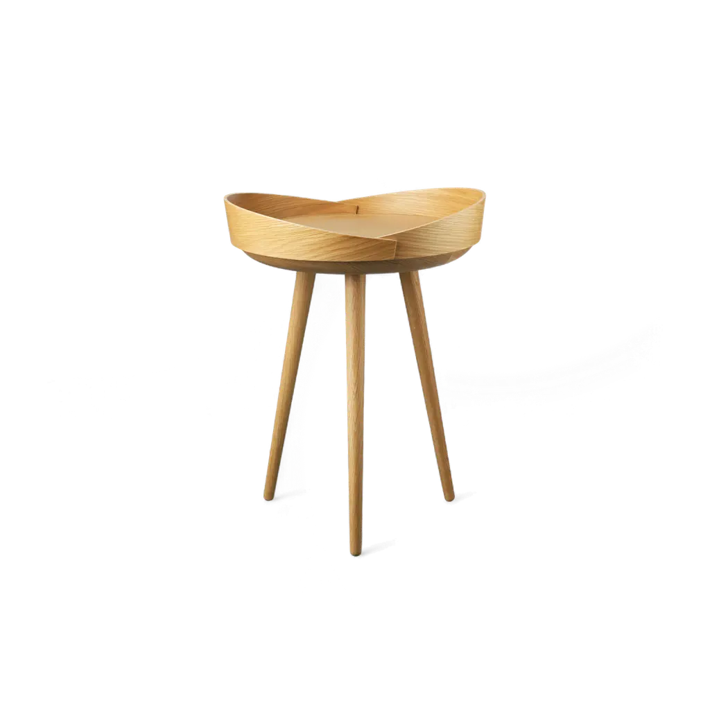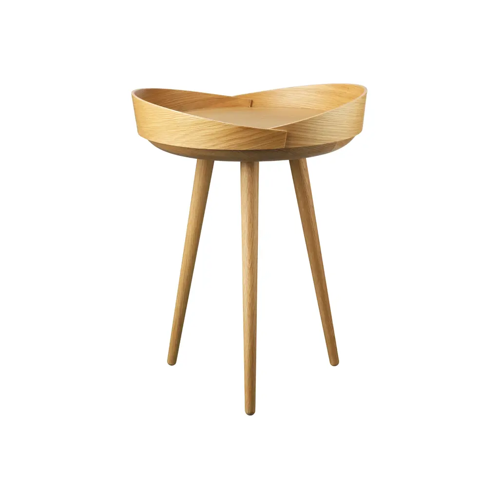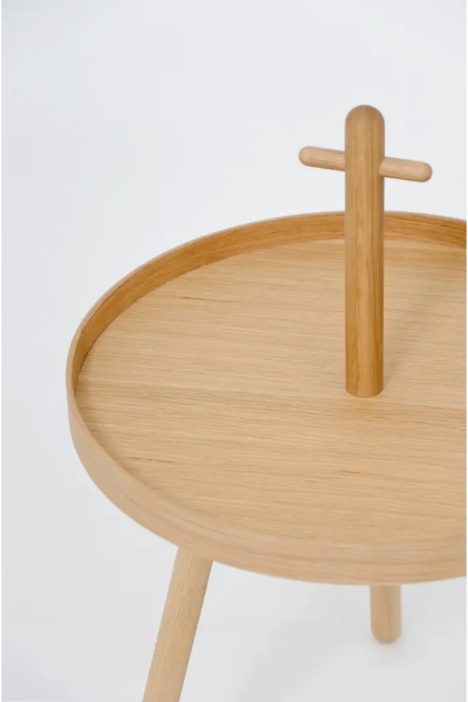 Pick Me Up table combines contemporary style with practicality. The feature handle makes it easy to move from one place to another. It’s a handy side table to use when the occasion arises - a place for snacks and drinks while entertaining friends and when they leave, move it out of the way. It’s also a convenient place for keeping phones, wallets and keys. The slim lip edge stops spills and prevents things from sliding off. Three legs provide great stability. Finished with a matt lacquer to protect against stains, it’s both hardwearing and stylish. Pick Me Up is made from sustainably harvested natural American white oak and oak veneers, selected for their warm color, beautiful grain pattern and traditional hardwood durability. All edges look crisp but are carefully hand sanded to make them soft to the touch. Finished with a matt, water-resistant lacquer. Design by Lincoln Rivers.