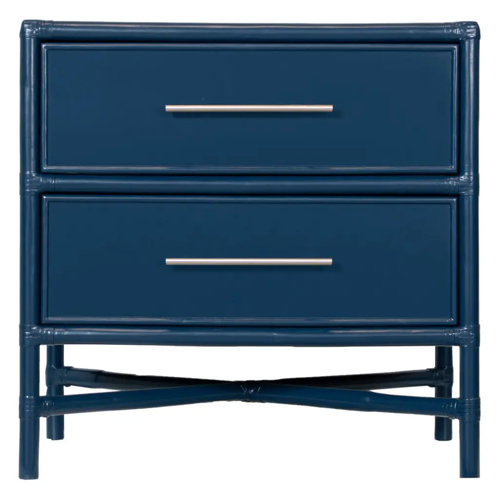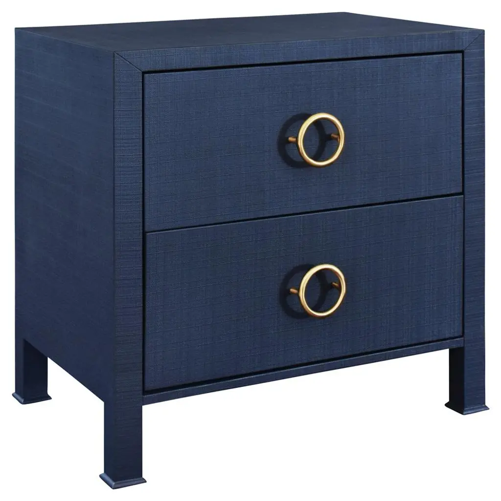 Worlds Away Edelman Modern Classic Navy Linen Side Table